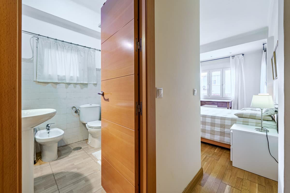 We are offering this magnificent apartment with a Tourist License for sale. It is located at Avenida La Rosaleda 21, next to the river. The apartment is fully furnished and decorated with the latest trends. It is a first-floor apartment with a south-facing orientation, which provides plenty of natural light. The master suite is very spacious with a built-in wardrobe and a balcony overlooking the street. The second bedroom has two single beds (90 cm) and a built-in wardrobe. There are two bathrooms, one with a bathtub and the other with a shower. The separate kitchen is very spacious and includes a utility room with a washing machine and a natural gas water heater. Finally, the living-dining room is stylishly decorated and has a lovely glazed bay window. The apartment has central air conditioning with a heat pump in all rooms. A parking space in the same building is included. The monthly community fees are €57 (plus 20% for tourist accommodation), and the annual property tax (IBI) is €324.