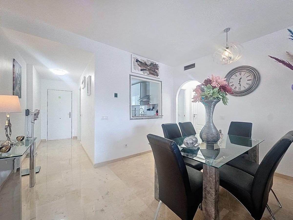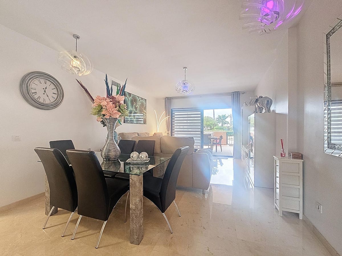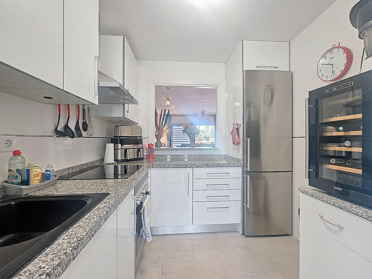 With an excellent location just 400m from Manilva beach and its coastal path that connects the entire Costa del Sol, perfect for long walks and beach bars. Close to supermarkets, shops, and a wide variety of leisure activities, being only a 4-minute drive from San Luis de Sabinillas. Easy access to the main roads connecting to the popular resorts of Sotogrande and Estepona, both less than 15 minutes away by car. The property features a spacious living-dining room with access to the terrace and a fully equipped kitchen. It has 2 bedrooms, both with built-in wardrobes, and 2 full bathrooms, one of which is en suite. The property also boasts a large solarium, 2 storage rooms, and a private parking space. The complex has communal gardens and a swimming pool. GREAT OPPORTUNITY!! WE HIGHLY RECOMMEND A VISIT!!