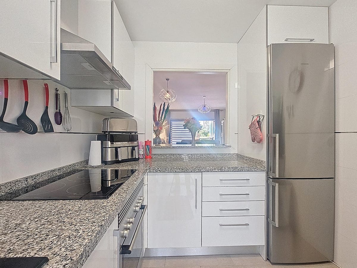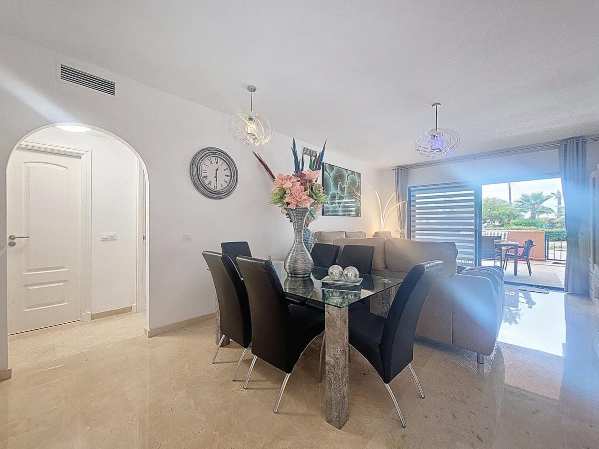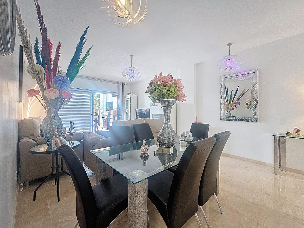 With an excellent location just 400m from Manilva beach and its coastal path that connects the entire Costa del Sol, perfect for long walks and beach bars. Close to supermarkets, shops, and a wide variety of leisure activities, being only a 4-minute drive from San Luis de Sabinillas. Easy access to the main roads connecting to the popular resorts of Sotogrande and Estepona, both less than 15 minutes away by car. The property features a spacious living-dining room with access to the terrace and a fully equipped kitchen. It has 2 bedrooms, both with built-in wardrobes, and 2 full bathrooms, one of which is en suite. The property also boasts a large solarium, 2 storage rooms, and a private parking space. The complex has communal gardens and a swimming pool. GREAT OPPORTUNITY!! WE HIGHLY RECOMMEND A VISIT!!