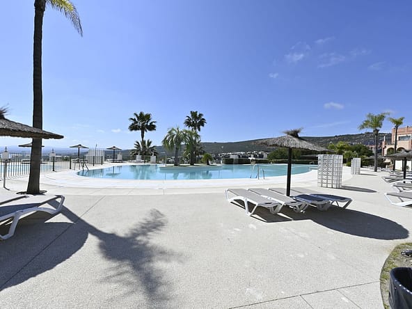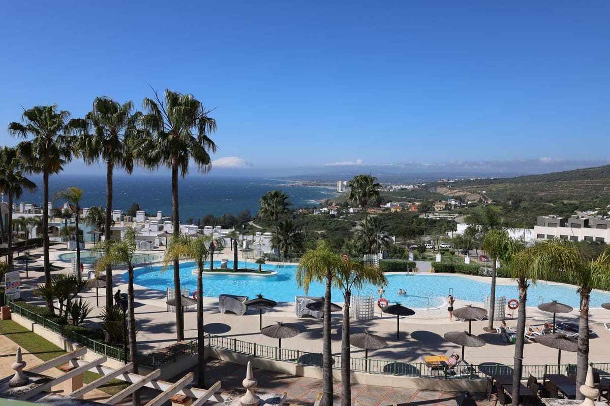 Nice and cosy apartment for sale in Manilva. The apartment has two bedrooms, two bathrooms, equipped kitchen and living room. It is situated in an authentic Andalusian holiday village, with two pools, a restaurant, bar and views to the street of Gibraltar. In the urbanisation you can find a space for children, a space to play football, basketball and handball. It is located 500m from the sea. A rental contract is in place. The complex is gated, providing security, which is an attractive feature for potential tenants and buyers.