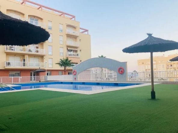 Nice and cosy apartment for sale in Manilva. The apartment has two bedrooms, two bathrooms, equipped kitchen and living room. It is situated in an authentic Andalusian holiday village, with two pools, a restaurant, bar and views to the street of Gibraltar. In the urbanisation you can find a space for children, a space to play football, basketball and handball. It is located 500m from the sea. A rental contract is in place. The complex is gated, providing security, which is an attractive feature for potential tenants and buyers. And the harbour and beach of Sotogrande just 5 minutes away by car.