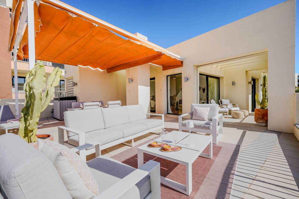 This exceptional two-bedroom penthouse is located in the prestigious Samara Resort in Altos de Los Monteros, one of Marbella’s most peaceful and elevated residential areas. With a generous 106 m² terrace and uninterrupted panoramic views over the Mediterranean Sea, Gibraltar and even the African coastline on clear days, this home offers a truly privileged setting. A section of the terrace is fitted with glass curtains, allowing you to enjoy the outdoor space comfortably even during the winter months.