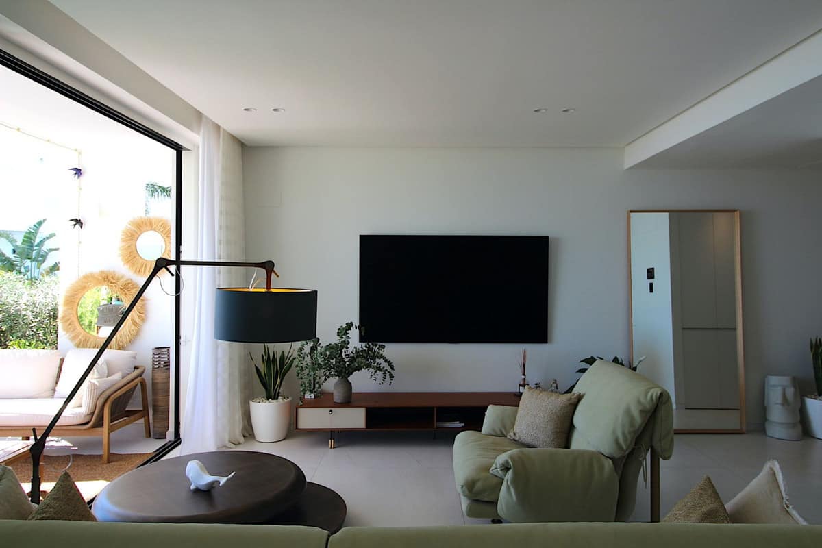 Floor-to-ceiling glass doors open onto the expansive terrace, creating seamless indoor–outdoor living enhanced by the property’s privileged south-facing orientation.
