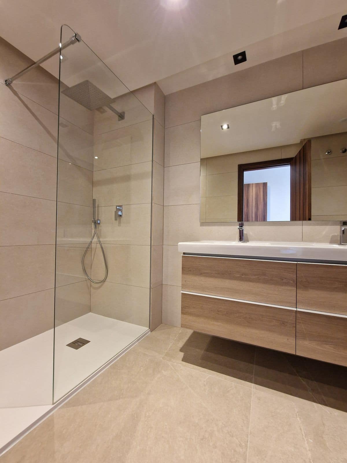 Both bathrooms were completely renovated in 2017 and feature high-quality finishes with tiled walls, modern showers, washbasins, and WC.