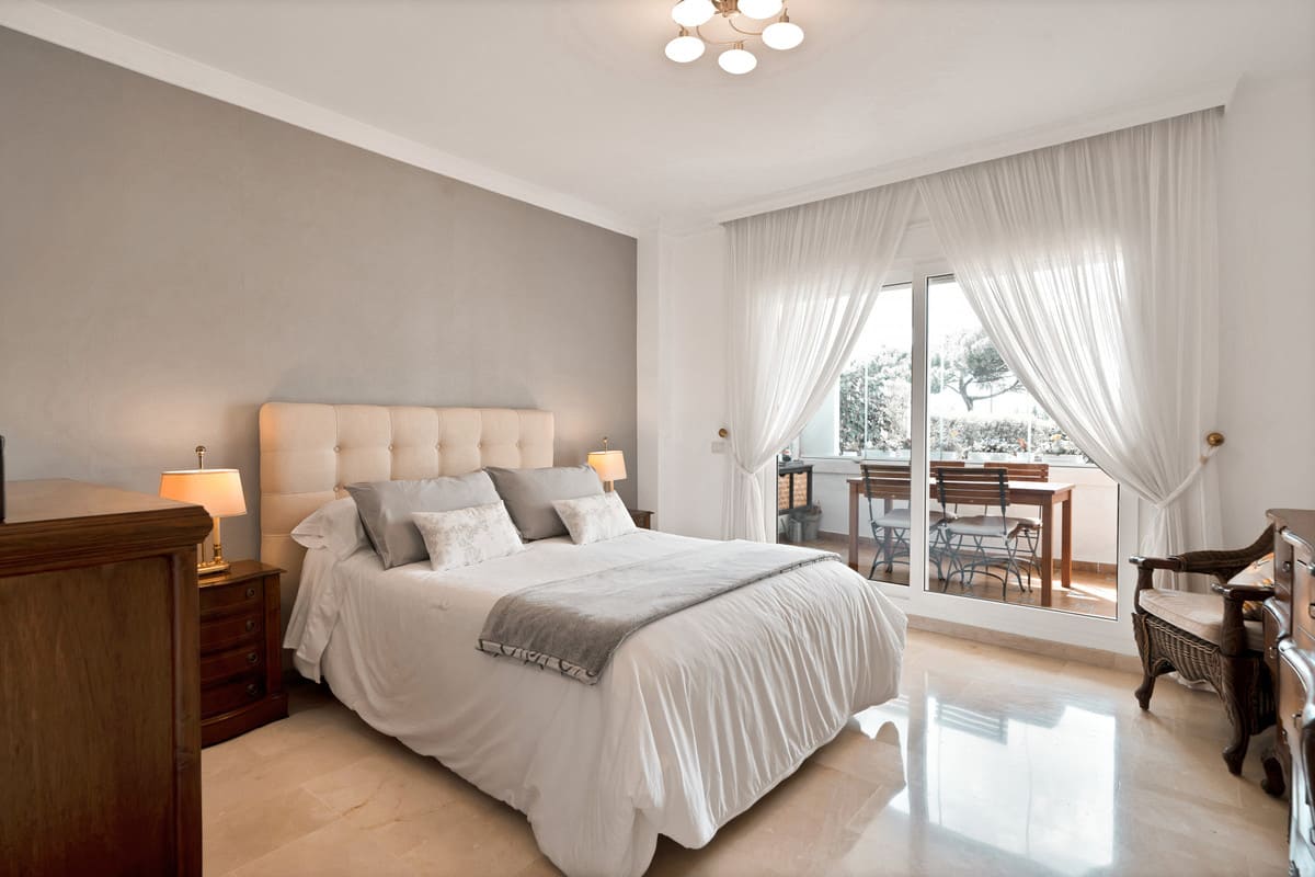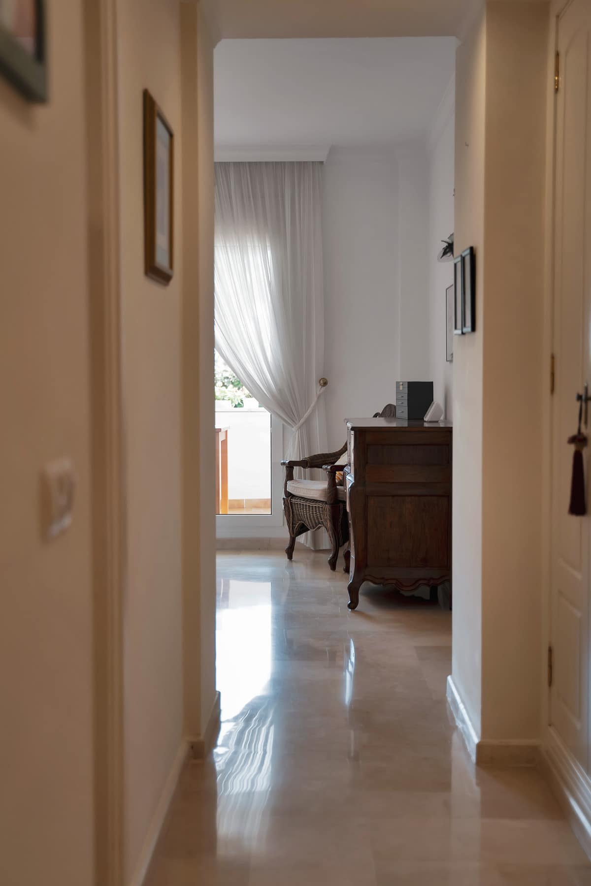 This apartment has been beautifully renovated and has 2 bedrooms and bathrooms and a living room with open kitchen, the balcony overlooks the lively street with many nice restaurants and bars and has a view of the sea. The location is great with a few steps away from the cozy Boulevard and Port of Marbella.