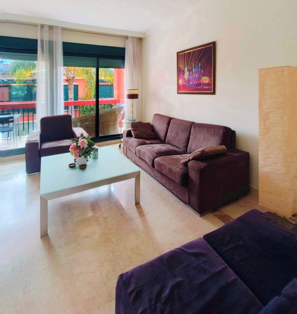 Luxury details elevate this home, including gleaming marble floors, double-glazed Climalit windows with exterior blinds, 24-hour security, and an automatic doorman. Relax in the beautifully maintained communal gardens or take a dip in the sparkling pool. Plus, with a dedicated parking space and storage room, convenience is at your fingertips.
