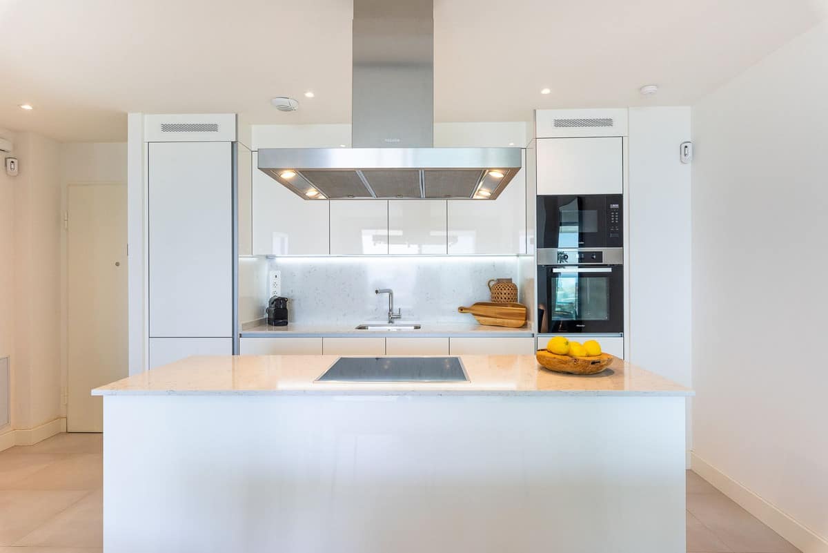 The apartment has two bedrooms and two bathrooms, with a modern, open plan kitchen fitted with Miele appliances.