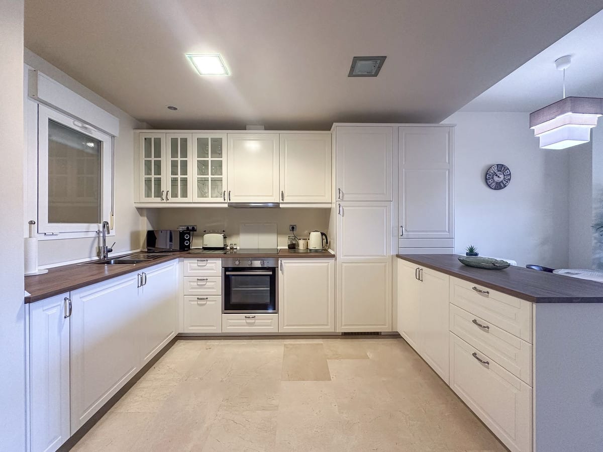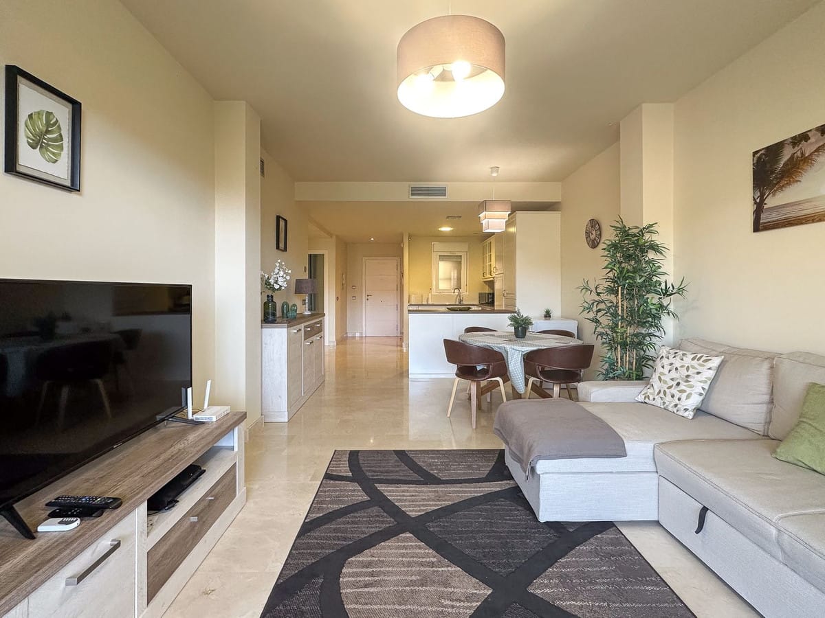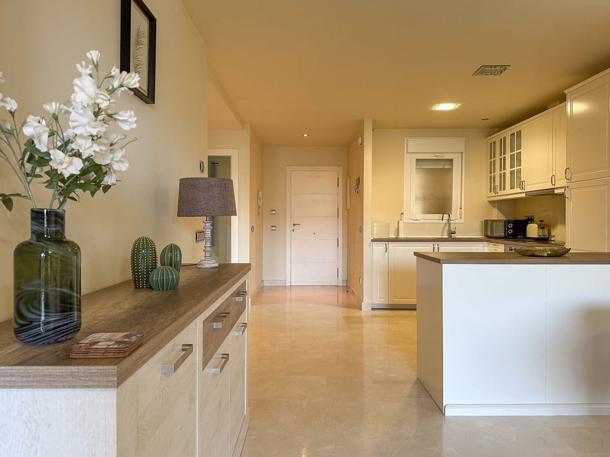 The location is one of the property’s strongest advantages. Situated in a peaceful residential complex with gardens and a communal pool, the home is only five minutes by car from Fuengirola and twenty-five minutes from Málaga Airport, offering both tranquillity and excellent connections. A private enclosed parking space, located just three minutes on foot from the apartment, is included in the price.