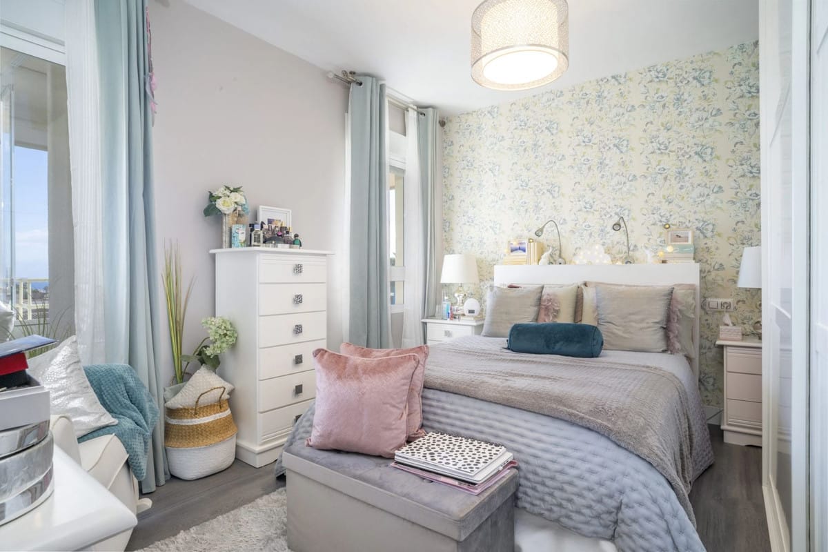 This beautifully designed apartment boasts 2 spacious bedrooms, a modern bathroom, and a bright salon that invites natural light. The well-equipped kitchen and hallway lead to a double bed setup, ensuring a cozy living experience. Additional features include air conditioning, a video intercom, and convenient access via an elevator, making it suitable for everyone, including those with disabilities.