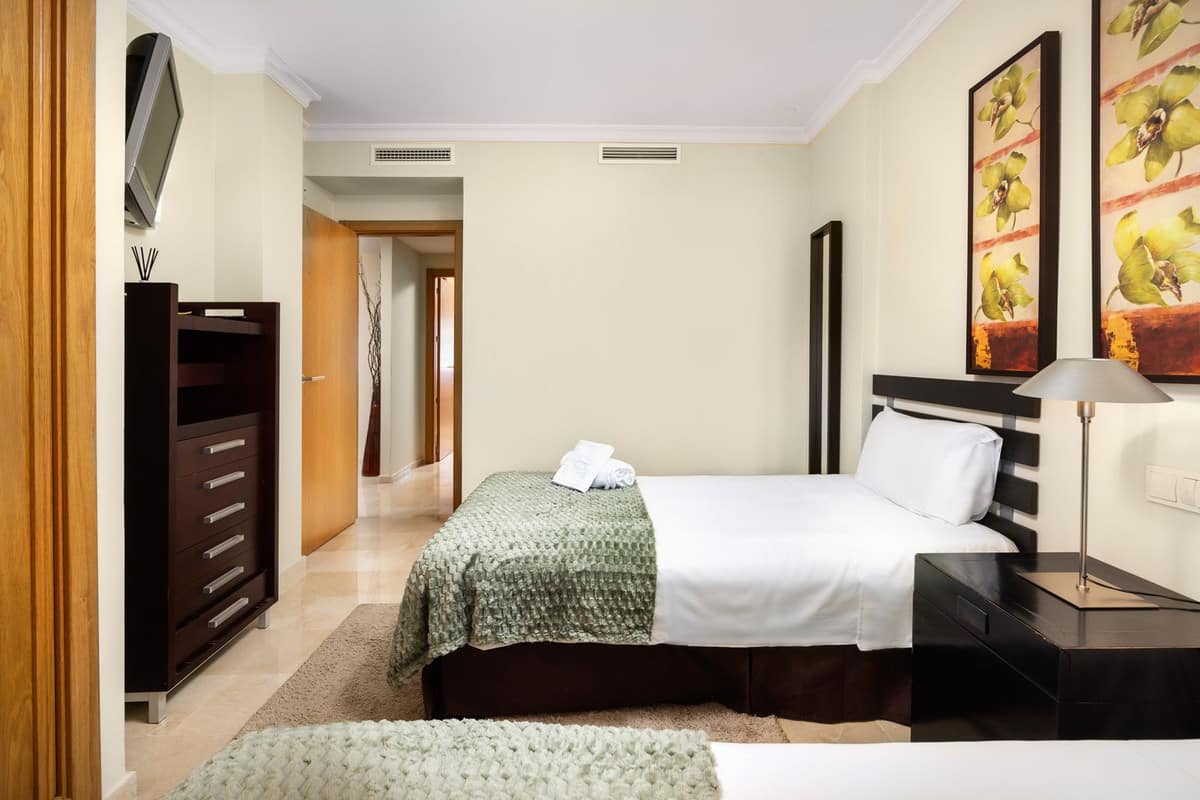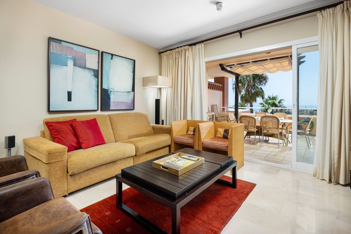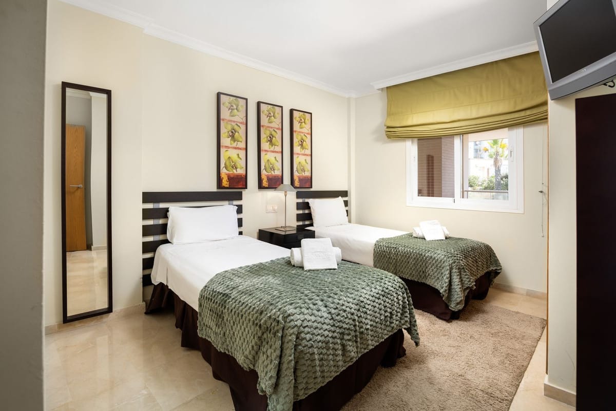 Immaculate luxury, first-floor apartment for sale in Hotel Resort, located between La Cala and Fuengirola. This stylish two-bedroom, two-bathroom apartment, built in 2006, is located in a prestigious gated development with 24-hour security.
