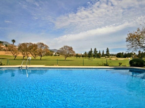 This apartment has a huge front terrace and good, easy access to the road. The terrace enjoys shade and light and the outside space is an easy extension to comfortable living. Space for 3 vehicles. There is also a storage room on entry to your left. The open kitchen is easily accessible from the lounge and the 2 bedrooms are to the right with the bathroom. Mijas Golf is at an easy distance to both Fuengirola and La Cala de Mijas and supermarkets and shops and bars and restaurants are all an easy drive away. The urbanisation has a large pool and is very well maintained. There is a children`s park. There are also extensive walks through green belt areas throughout Mijas Golf. A great place to enjoy all year round or to use as a very comfortable second residence.