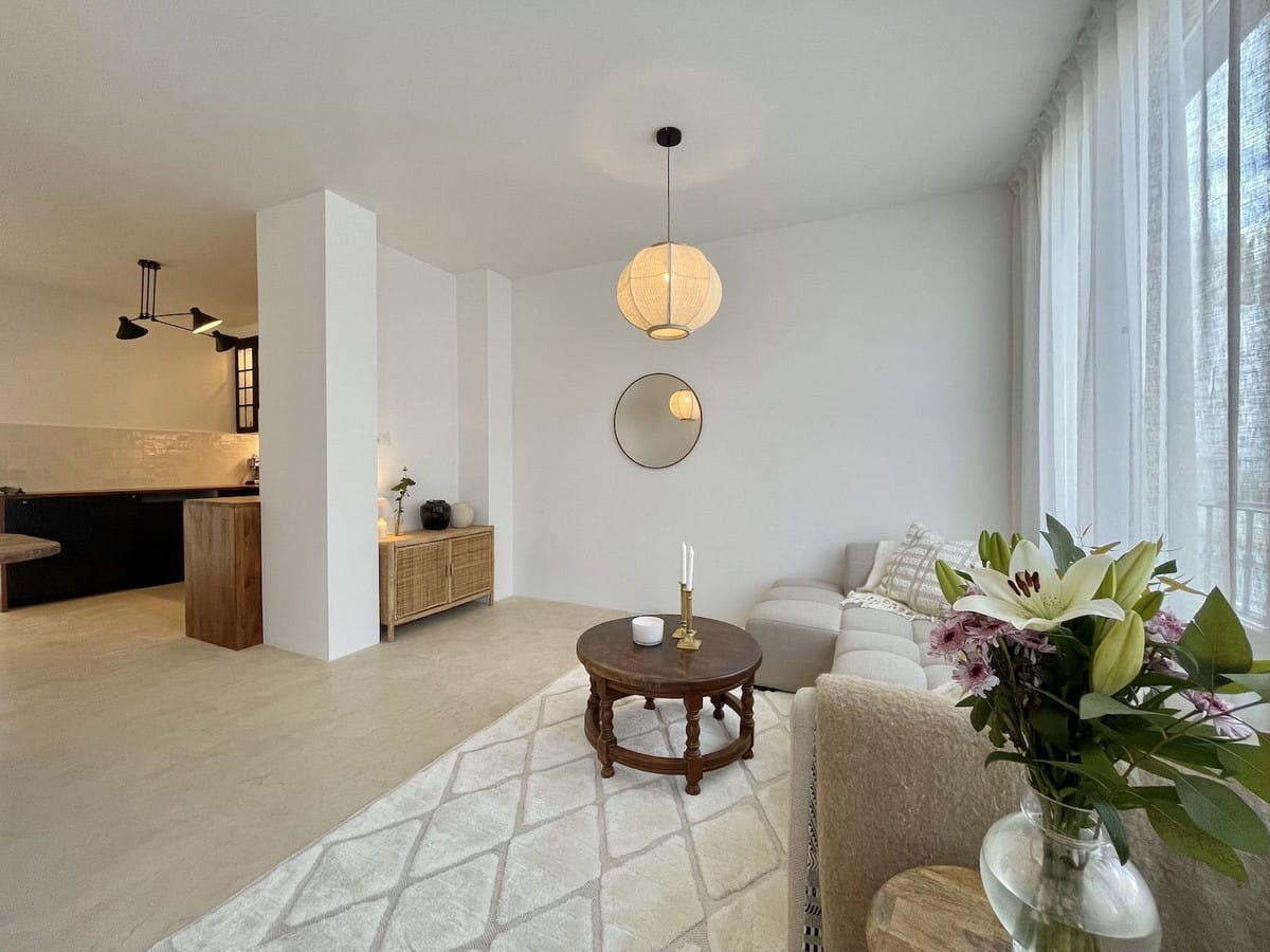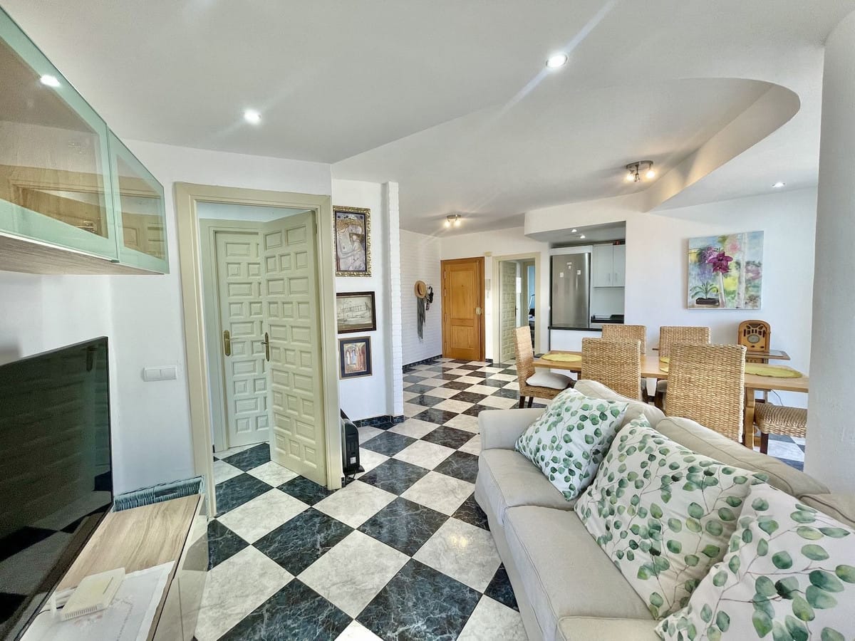 Turnkey 2-bed/1-bath apartment in the Chimeneas area of Nerja. Bright living-dining room, fully fitted kitchen and a separate laundry room. Sold fully furnished. Community pool.