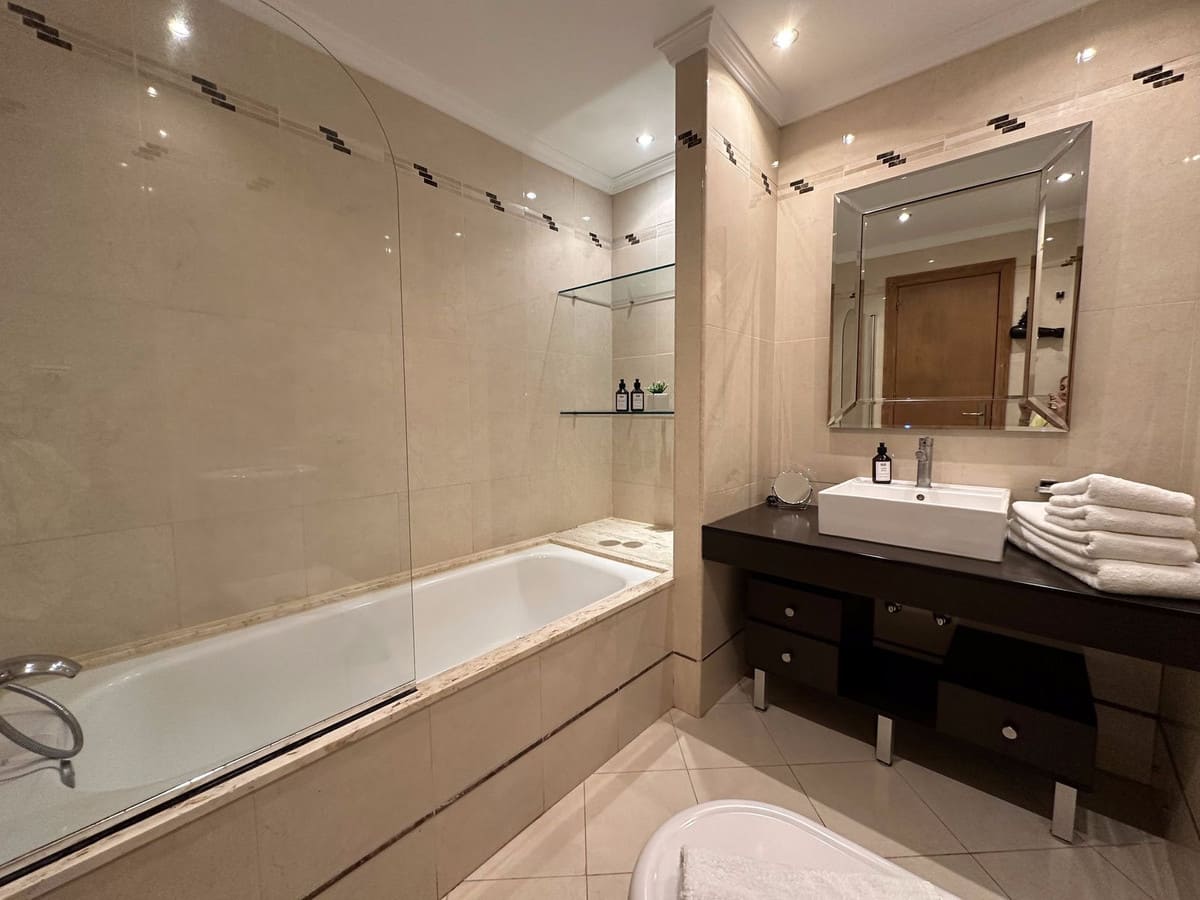 Also on the entrance level, you'll find a guest toilet and stairs leading up to the first floor, where you'll find two generously sized double bedrooms, each with its own private bathroom and private terrace – perfect for enjoying peaceful mornings or evening sunsets.