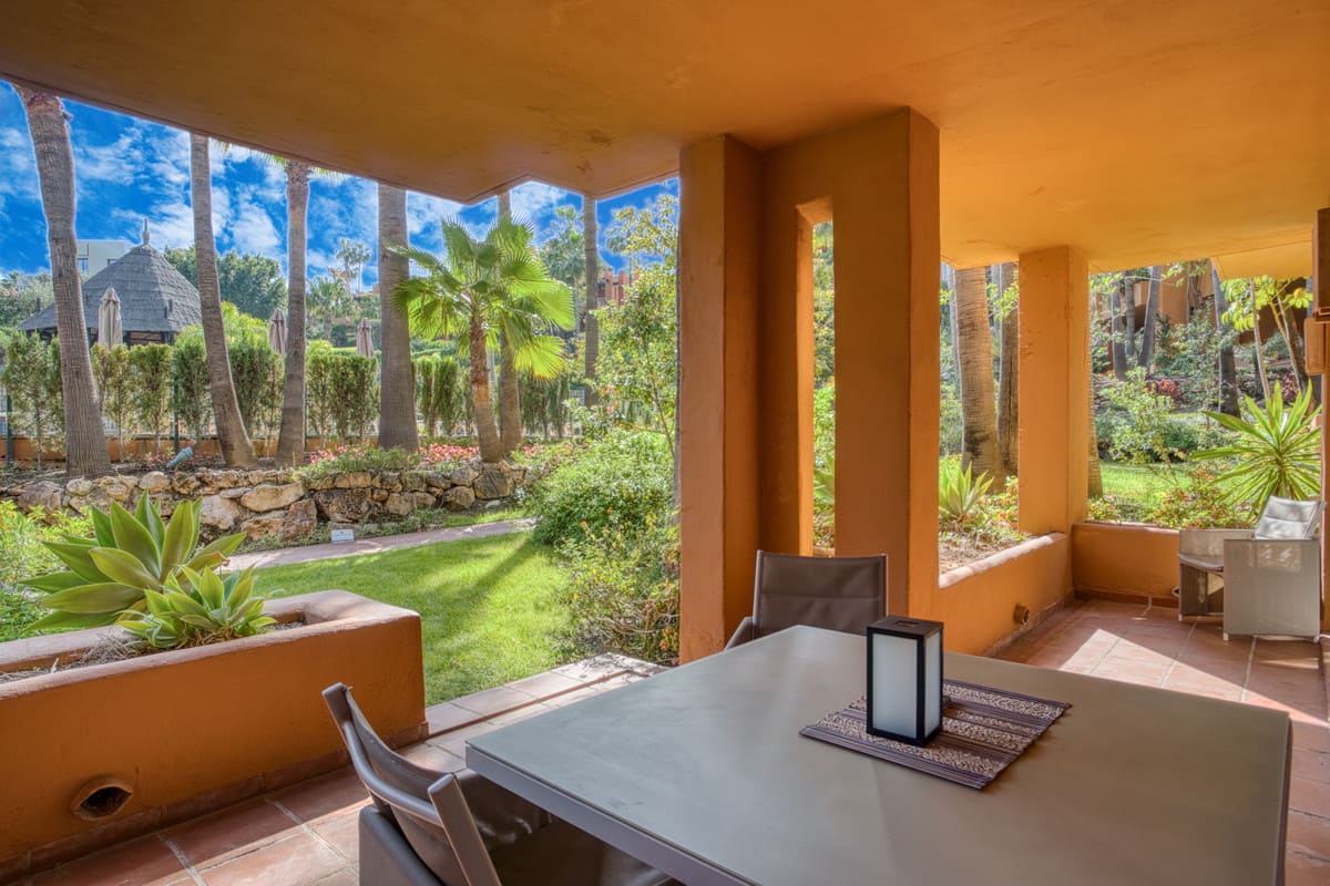 Set in one of Nueva Andalucia’s green communities with tropical gardens, a lake, and two pools, this southeast-facing ground-floor apartment is made for easy indoor-outdoor living.