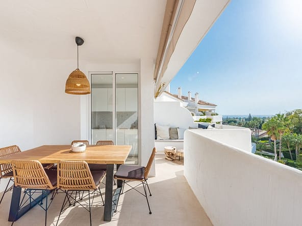 Elegance, Comfort, and Panoramic Views Experience an exclusive lifestyle in this stunning fully renovated 2024 penthouse, nestled in the prestigious Jardines de Nueva Andalucía. Boasting a sleek modern design and high-end finishes, this 2-bedroom, 2-bathroom property offers 100 m² of sophistication and comfort, complemented by a spectacular 13 m² private terrace with breathtaking views of La Concha, the surrounding golf courses and sea views. The open-plan layout enhances natural light and spaciousness, creating a refined yet inviting ambience. Sunlight floods every corner, highlighting contemporary details, elegant ceramic flooring, and a thoughtfully designed interior for maximum comfort. Key Features: ✔ Fully renovated in 2024, featuring a modern style with top-quality materials. ✔ 13 m² private terrace, perfect for sunlit breakfasts or dining under the stars. ✔ Private lift access, ensuring maximum convenience and privacy. ✔ Communal pool and landscaped gardens, offering a peaceful retreat in Nueva Andalucía. ✔ Prime location, just minutes from fine dining, boutique shopping, and the glamorous Puerto Banús. An ideal home, whether for year-round living or a luxurious getaway in Marbella.