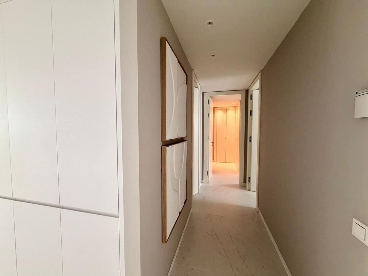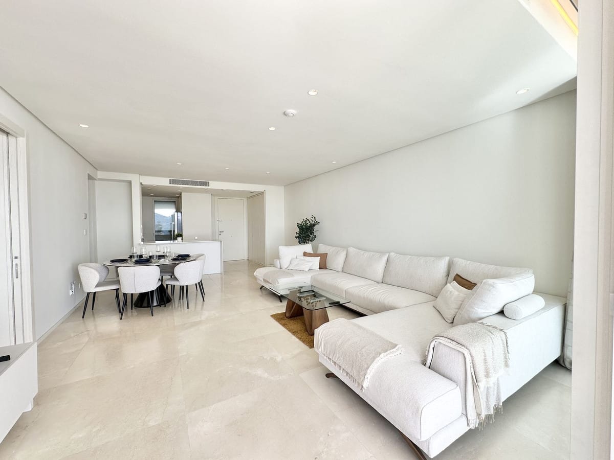The master bedroom includes fitted wardrobes and an en-suite bathroom, while the second bedroom is ideal for guests or family. The interior combines high-quality Porcelanosa finishes with furniture and design by Minotti, creating a refined, elegant, and timeless living space.