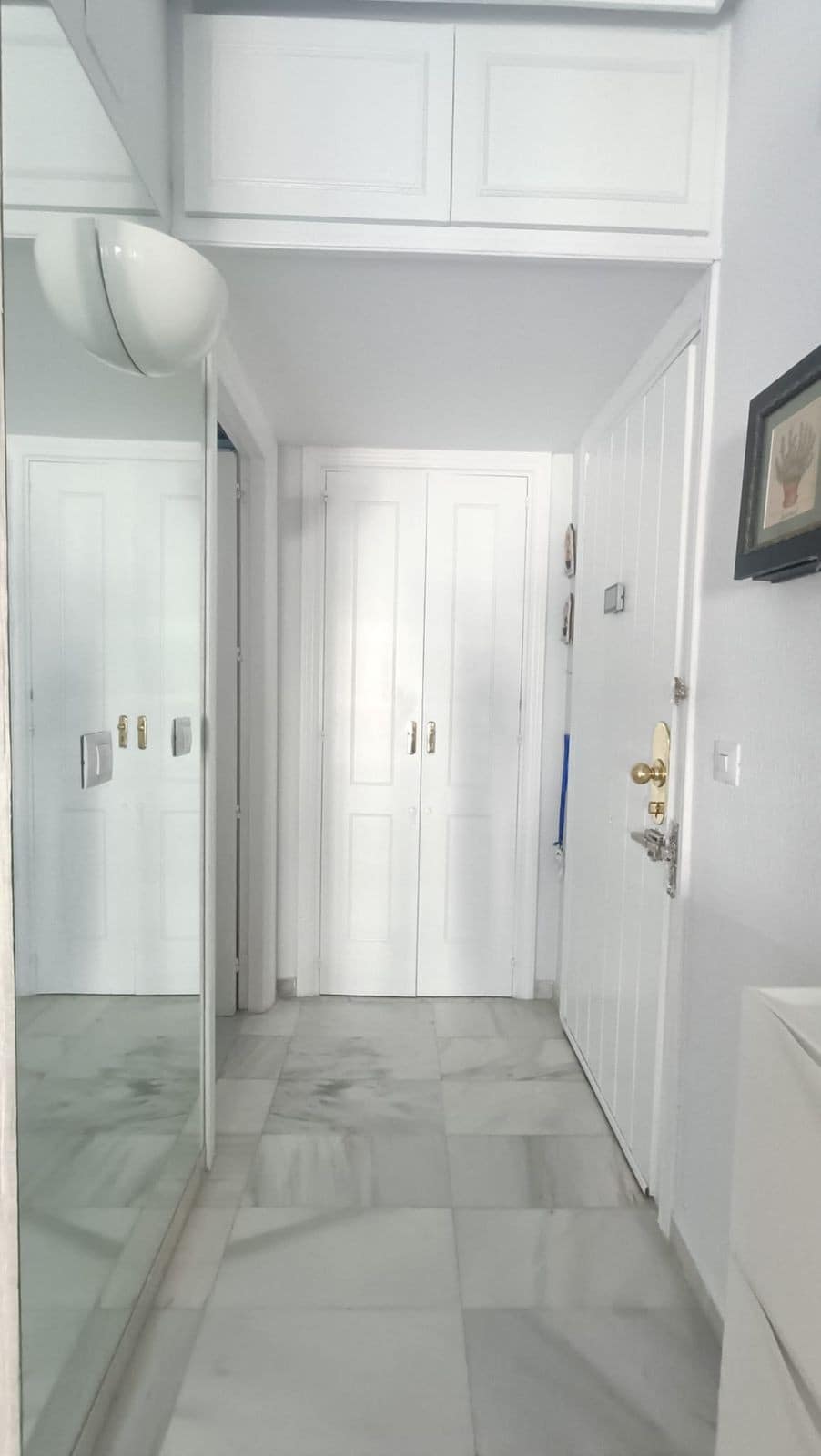 The apartment is spacious, with 2 bedrooms, each with its own fitted wardrobe with loft space and new doors.