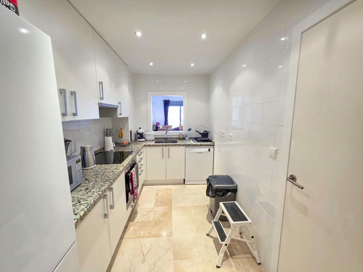 The apartment welcomes you with a spacious entrance hall leading into a bright and airy living area. From here, floor-to-ceiling doors open onto a 24 m² south-facing terrace, where you can enjoy panoramic views of the Mediterranean, Gibraltar, and the surrounding landscape—views guaranteed to inspire every day.