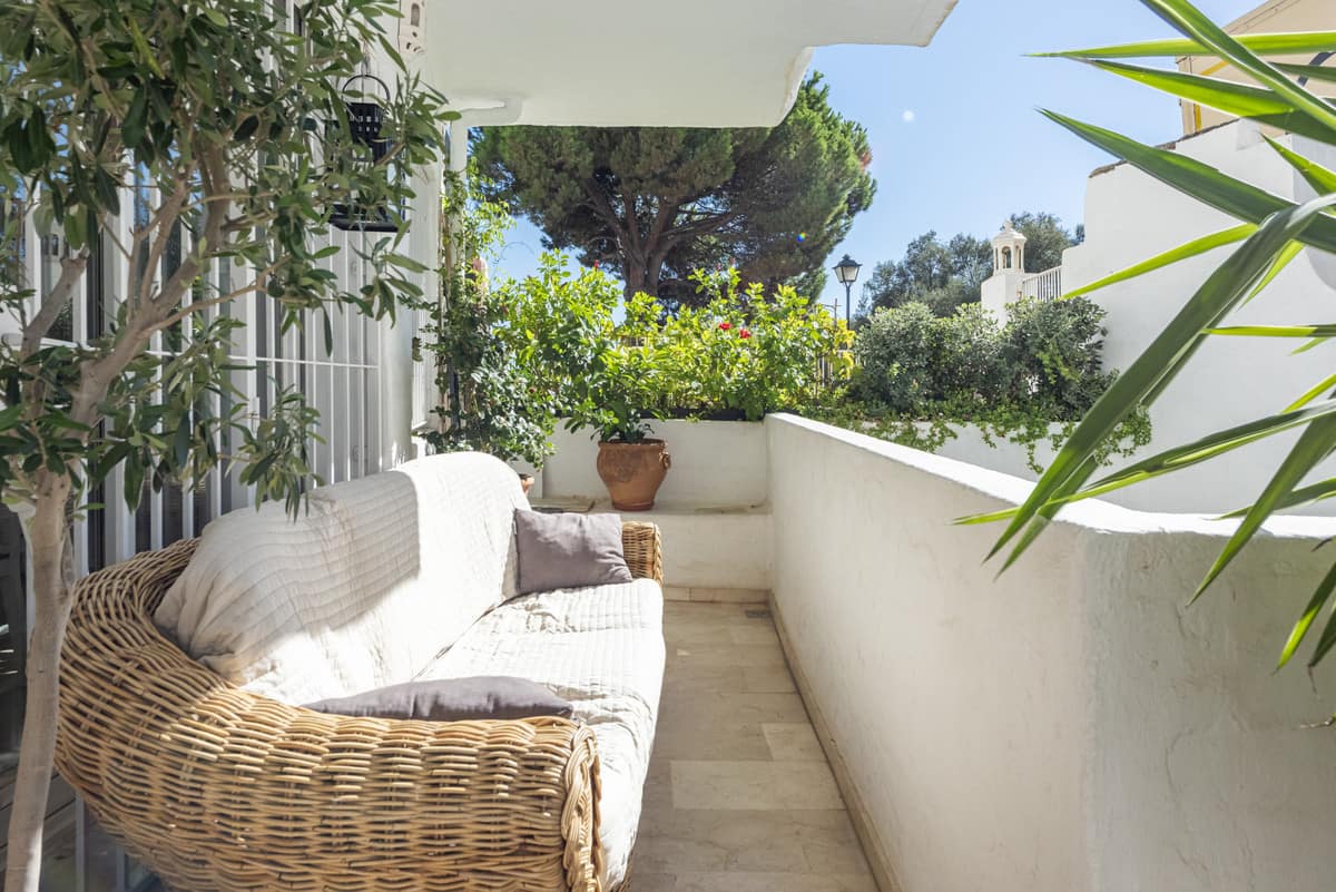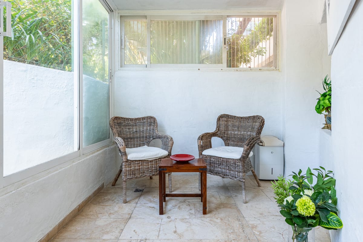 Beautiful two bedroom ground floor apartment, located in the sought-after Birdie Club community in Río Real, Marbella, this renovated property offers a peaceful and secure setting just a short walk from the beach, close to the golf club, and next to the future Four Seasons resort. Fully refurbished in 2021, the apartment features bright and spacious interiors and its own private entrance. This home includes two bedrooms with built-in wardrobes and access to a glazed east-facing terrace, one bathroom, and a comfortable living area with an open-plan kitchen that leads directly to the main west-facing terrace, perfect for enjoying the afternoon sun and the quiet surroundings. The community offers well-maintained gardens, a large communal saltwater swimming pool, and a separate children’s pool, creating a relaxed, resort-style atmosphere all year round. The property is sold fully furnished and includes a private parking space, with additional street parking available.