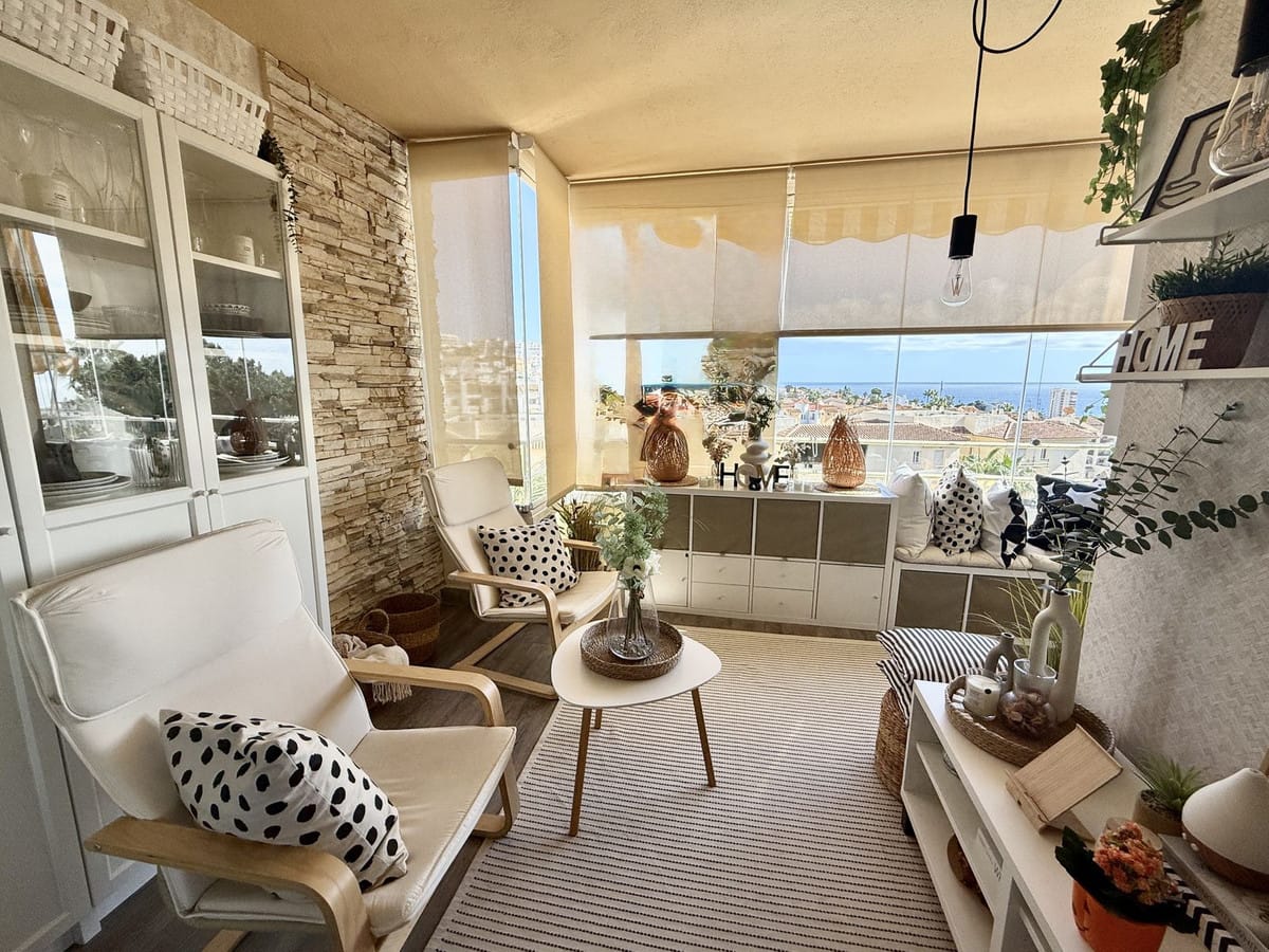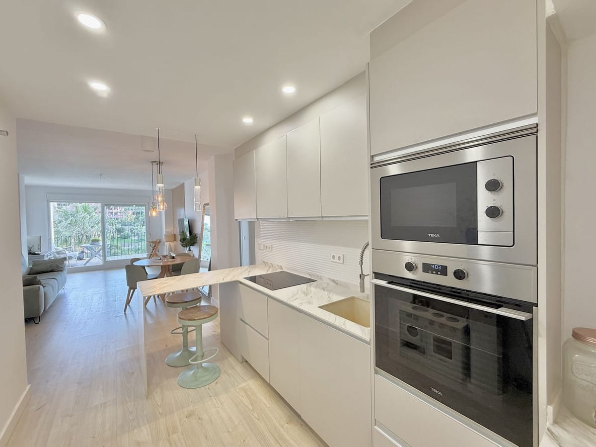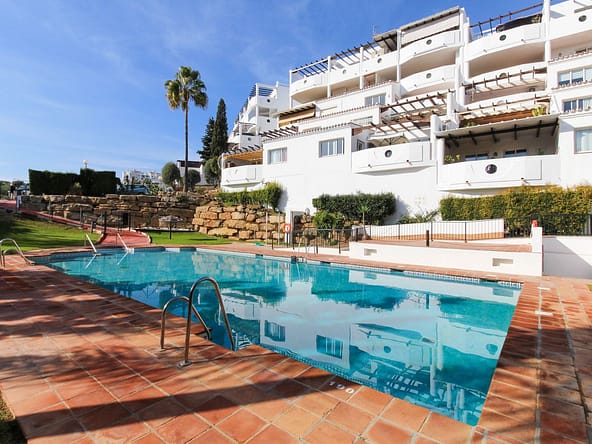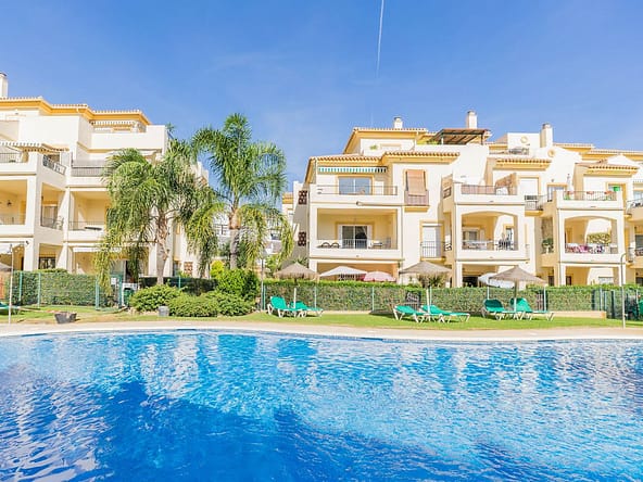Truly beautifully refurbished apartment, with large terrace and fabulous sea views! Located within the heart of lower Riviera del Sol, just a short walk to local shops, bars and restaurants and only a 10 minute walk to the beach and public transport, this first class property needs to be seen to appreciate its quality and charm. The apartment comprises of a hallway, lounge/dining room with patio door access to a large south¨-east facing balcony overlooking the lovely gardens and pool area then out to sea. There are 2 double bedrooms with fitted wardrobes and a bathroom plus of course a modern fully fitted kitchen. In addition the property has a storeroom accessed via stairs or lift. The communal areas of the building are immaculately kept as are the gardens, which comprise of lawns, subtropical trees and plants and, of course, the fabulous swimming pool and separate pool for small children. The apartment has hot and cold air-conditioning throughout and the furniture is optional. For security, the community has 24 hour CCTV cameras. Perfect for holidays or all year round living. Also very reasonable community fees at just 83 euros per month.