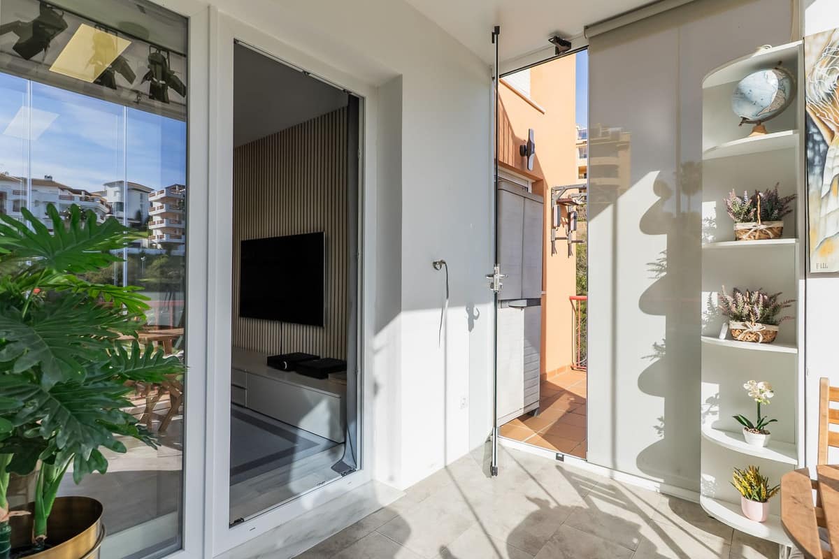Stunning renovated 2-bedroom, 2-bathroom apartment in the highly desirable area of Riviera del Sol, boasting a prime frontline golf position with beautiful open views across the golf course and towards the lake. Presented in excellent condition throughout, the property offers a bright and spacious living-dining area filled with natural light, seamlessly connecting to a generous terrace where you can relax and enjoy the peaceful surroundings. Part of the terrace has been enclosed with glass curtains, creating an additional versatile living space that can be enjoyed all year round while still allowing it to be fully opened to embrace the fresh air and views.