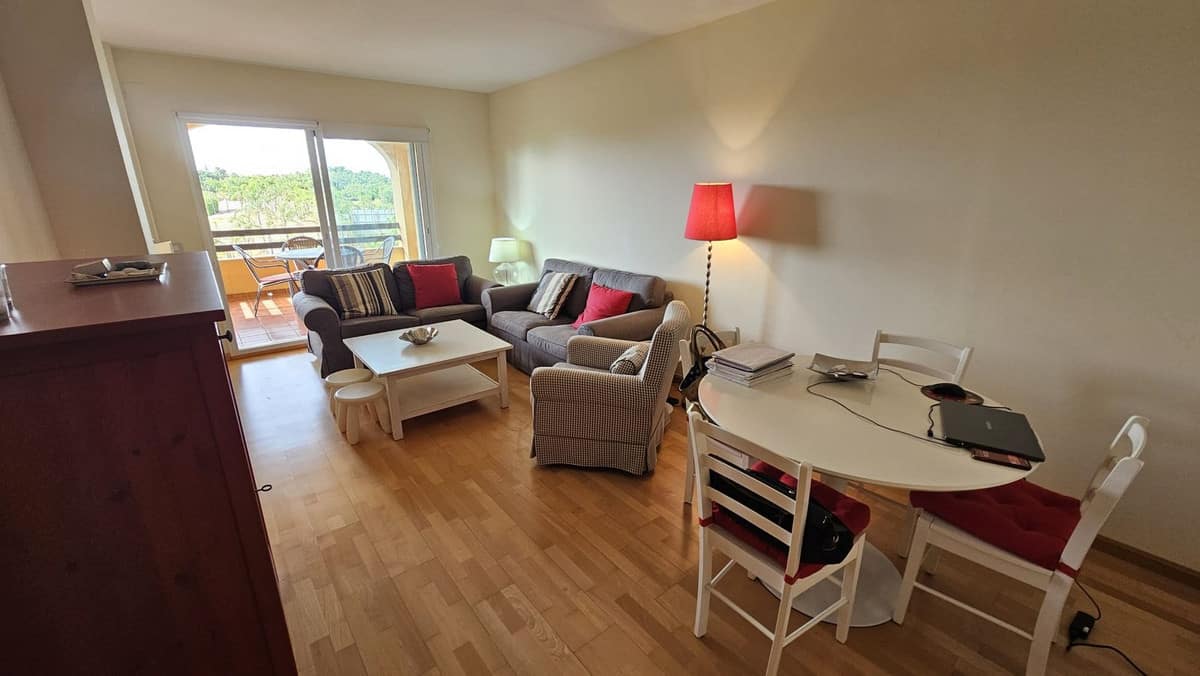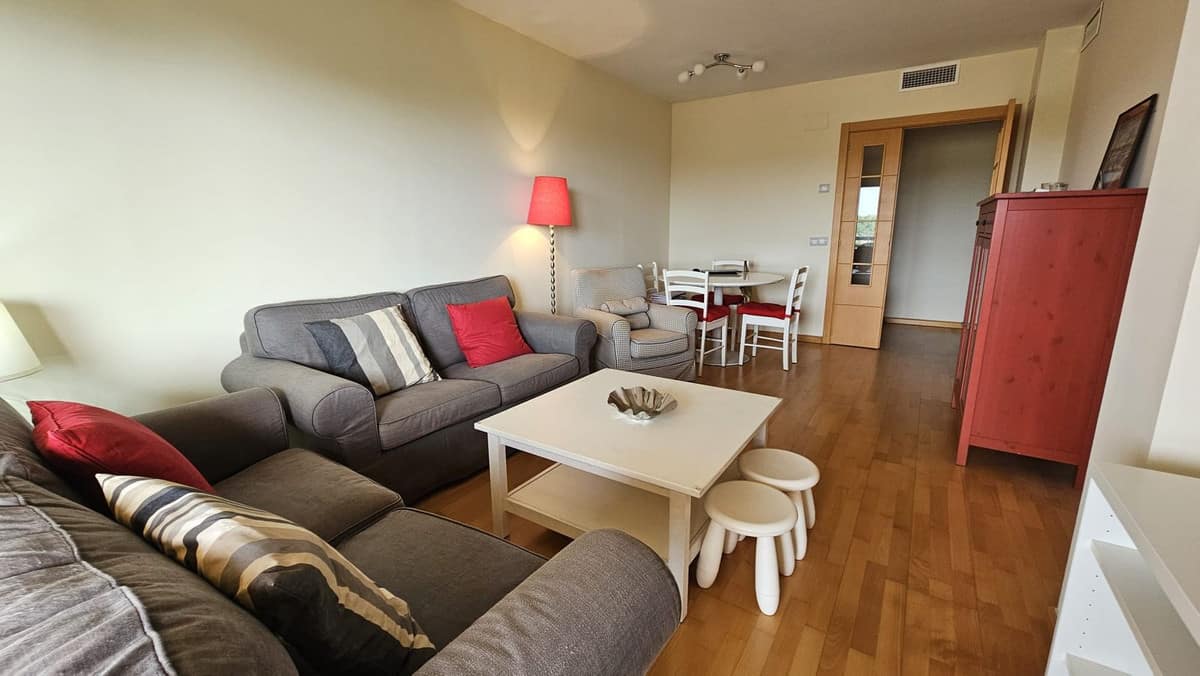 The apartment has two bedrooms, two full bathrooms, and a spacious terrace with beautiful views of the sea, the golf course, and the common areas. The complex offers several swimming pools, including a children's pool, and is close to a gym, paddle tennis courts, and a playground for the little ones.