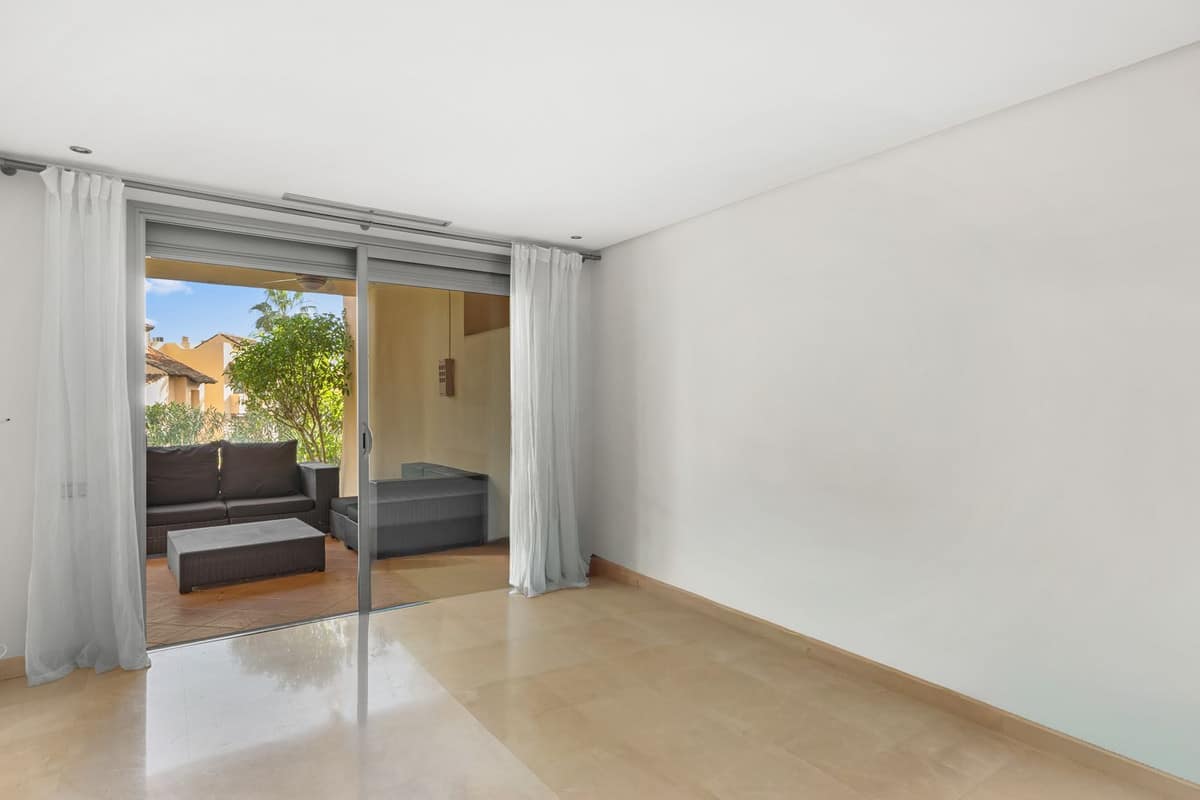 The property has a floor area of 157 m², distributed over two bedrooms and two bathrooms, one of which is en-suite, as well as a separate kitchen and living room. It is a ground floor flat with a garden, ideal for enjoying the Marbella climate, with a large 56 m² terrace that extends the outdoor space and provides a pleasant feeling of privacy.
