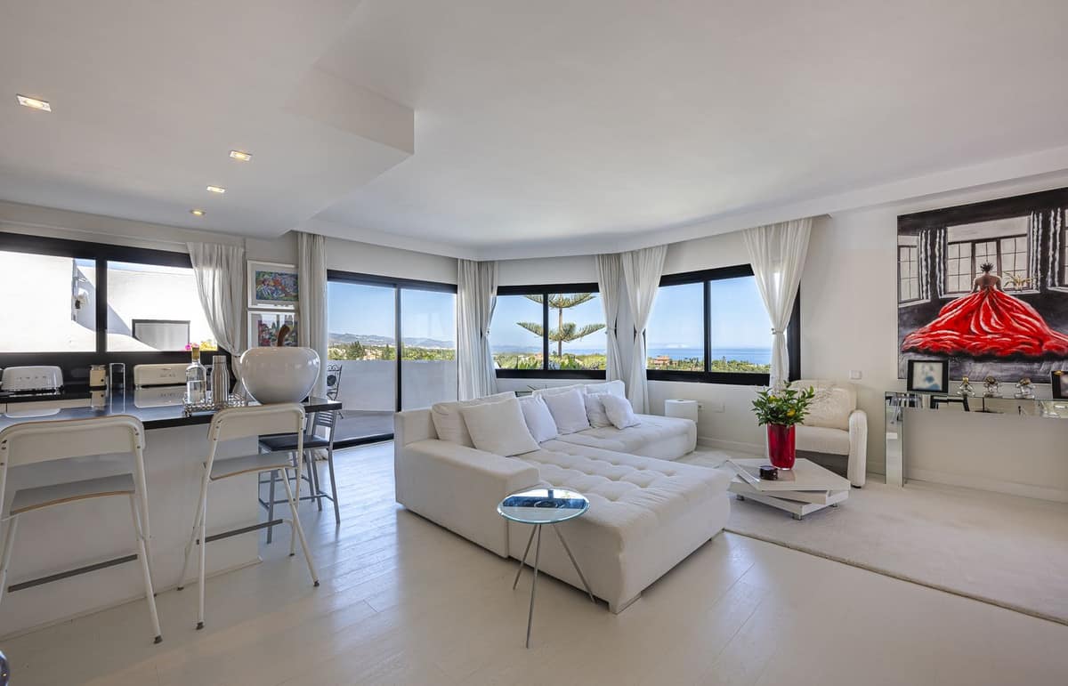 Located in the prestigious Coto Real complex on Marbella’s Golden Mile, this elegant 2-bedroom, 2-bathroom apartment offers stunning open sea views and a privileged hillside setting close to Puente Romano, fine dining, designer boutiques, and the beach.