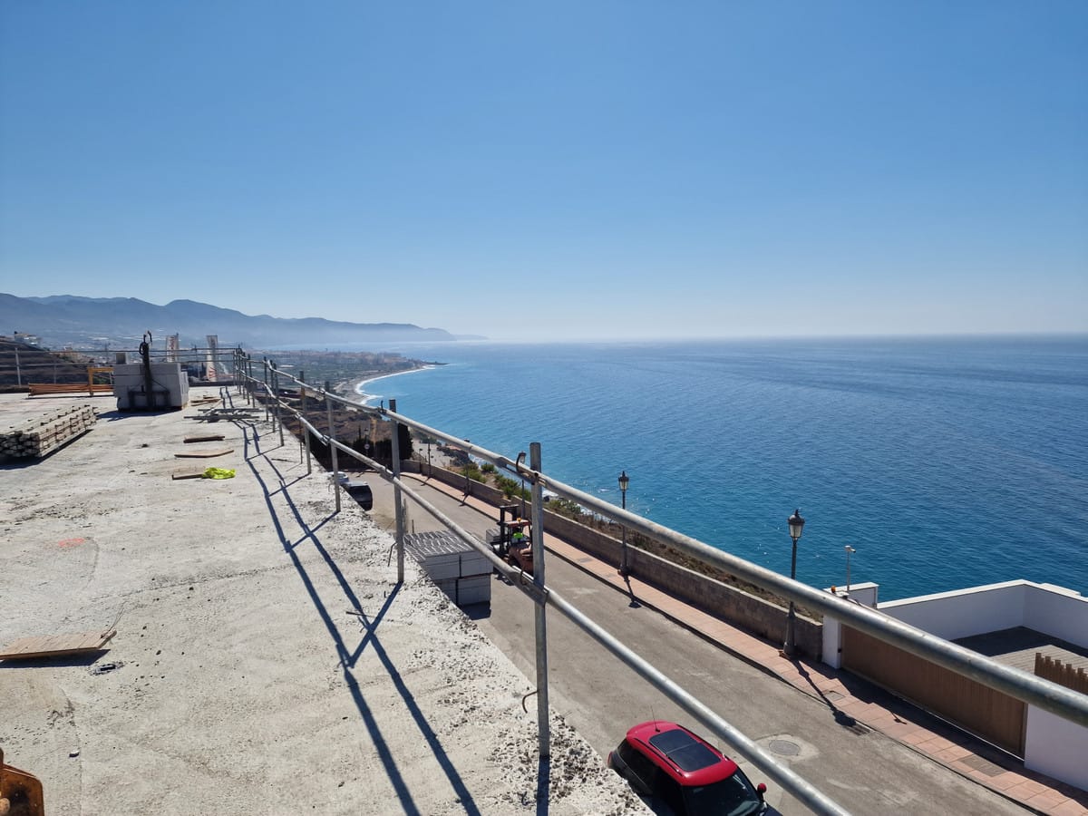In the same fantastic location between Nerja and Torrox, a construction of 57 new apartments will be built. You will find apartments with 2-3 bedrooms and large south-facing terraces and sea views. There will be both an infinity pool and a heated indoor pool! Facilities such as gym, paddle court and golf will make this project, one of the most unique new builds in the east of Malaga. The construction has already started, so contact us for more information.
