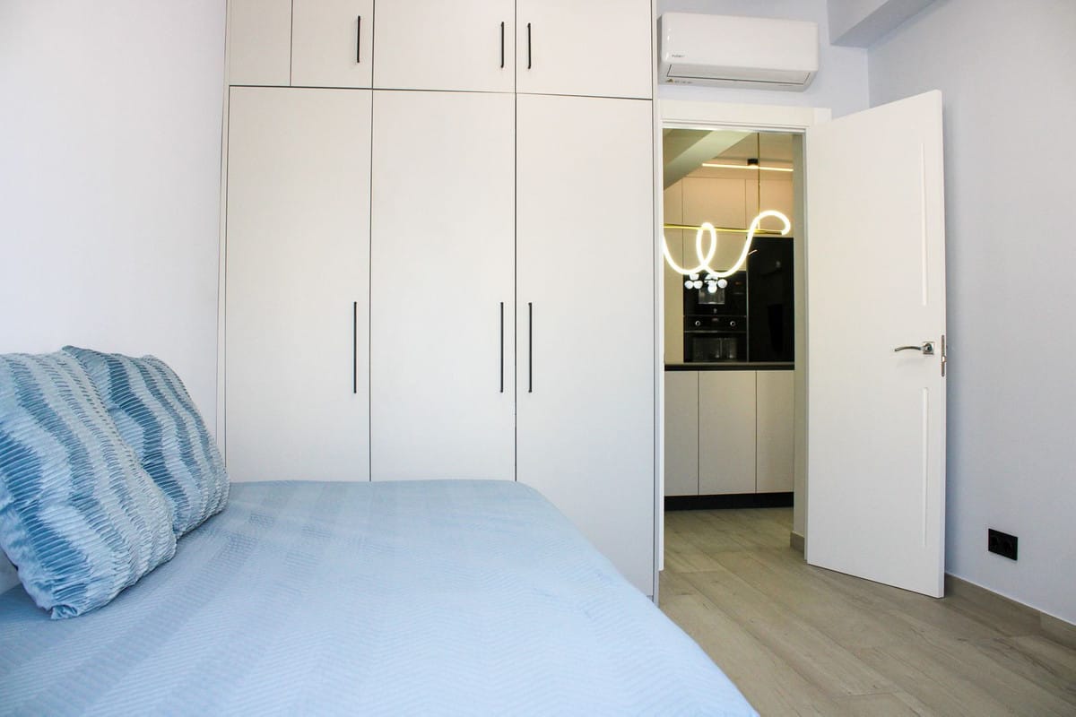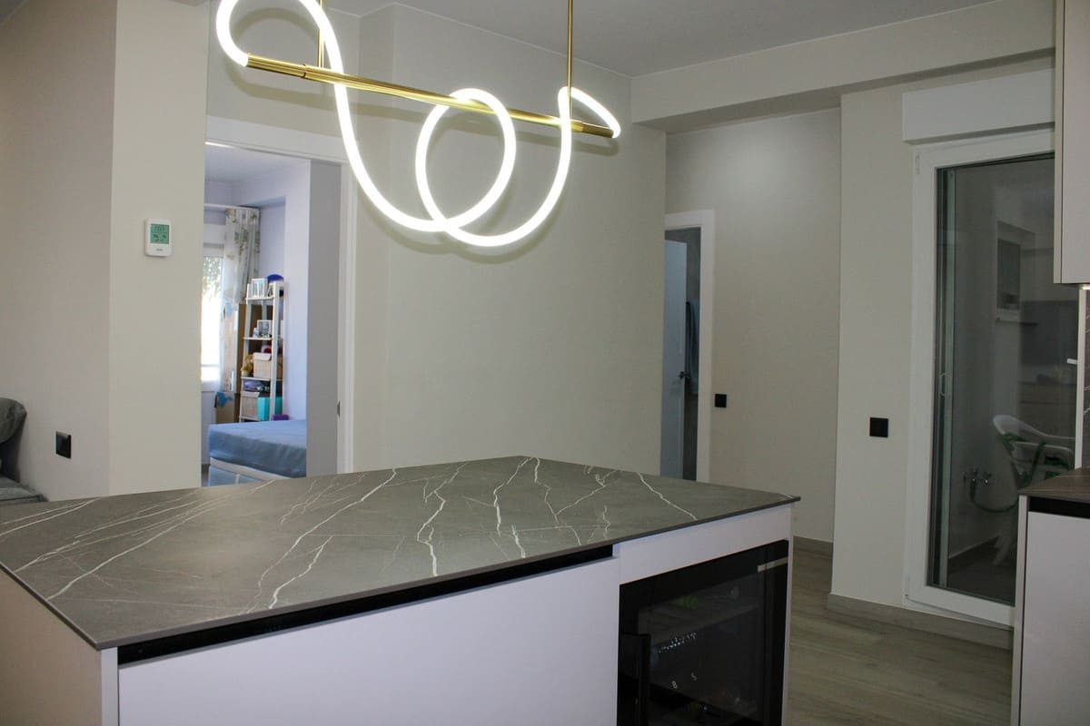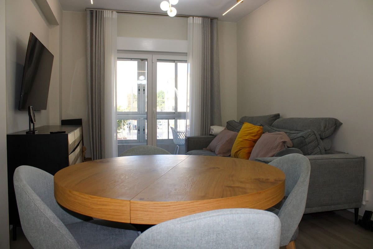 Newly renovated large bright apartment with two bedrooms, one bathroom and glazed balcony in the center of Vélez-Málaga, furnished with tasteful design and high-quality product selection.