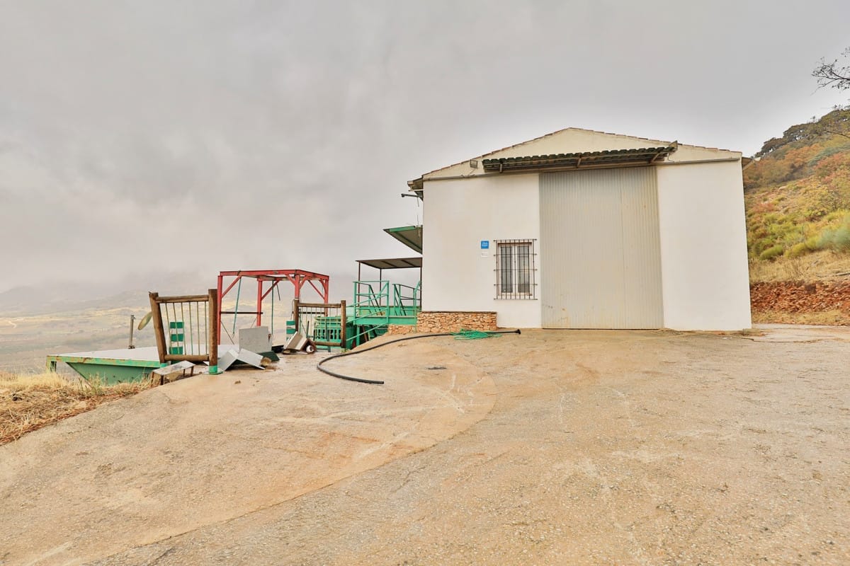 On the outskirts of the village of Alfarnatejo, we find this wonderful opportunity to run your agricultural business. On a plot of 60,987 m2  of industrial land, stands this industrial building where, on the one hand, there is a dwelling with 2 bedrooms, bathroom, sitting area and kitchen with incredible mountain views. You can even see the sea.   The 2nd part is a workplace currently set up for pressing olive oil. However, it can be used for other purposes. Work and live in a dreamlike place!   Alfarnatejo is at 1000m altitude and there are lots of hiking trails. It is also an excellent place for cycling to train at altitude.   We are pleased to be able to present this dream property to you soon, either personally or via virtual viewing. Because this world, it is unique – just like our Axarquía. In Andalusia. On the Costa del Sol. Here, on the sunny side of life…