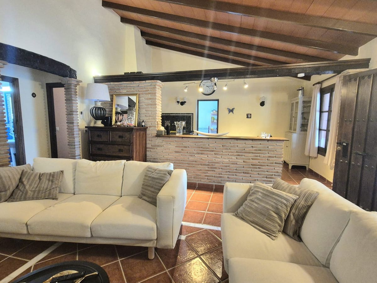 The finca is located just a few minutes outside of Alhaurín el Grande, entering via a concrete road, except for the last 200m2 which is a mixture of sand and stone. When you arrive at the finca, you have electric gates leading to a large stoned parking area at the front of the house as well as a 2 car garage just to your left. The first thing you see is the beautiful old pruned olive trees either side of the porche and the house.