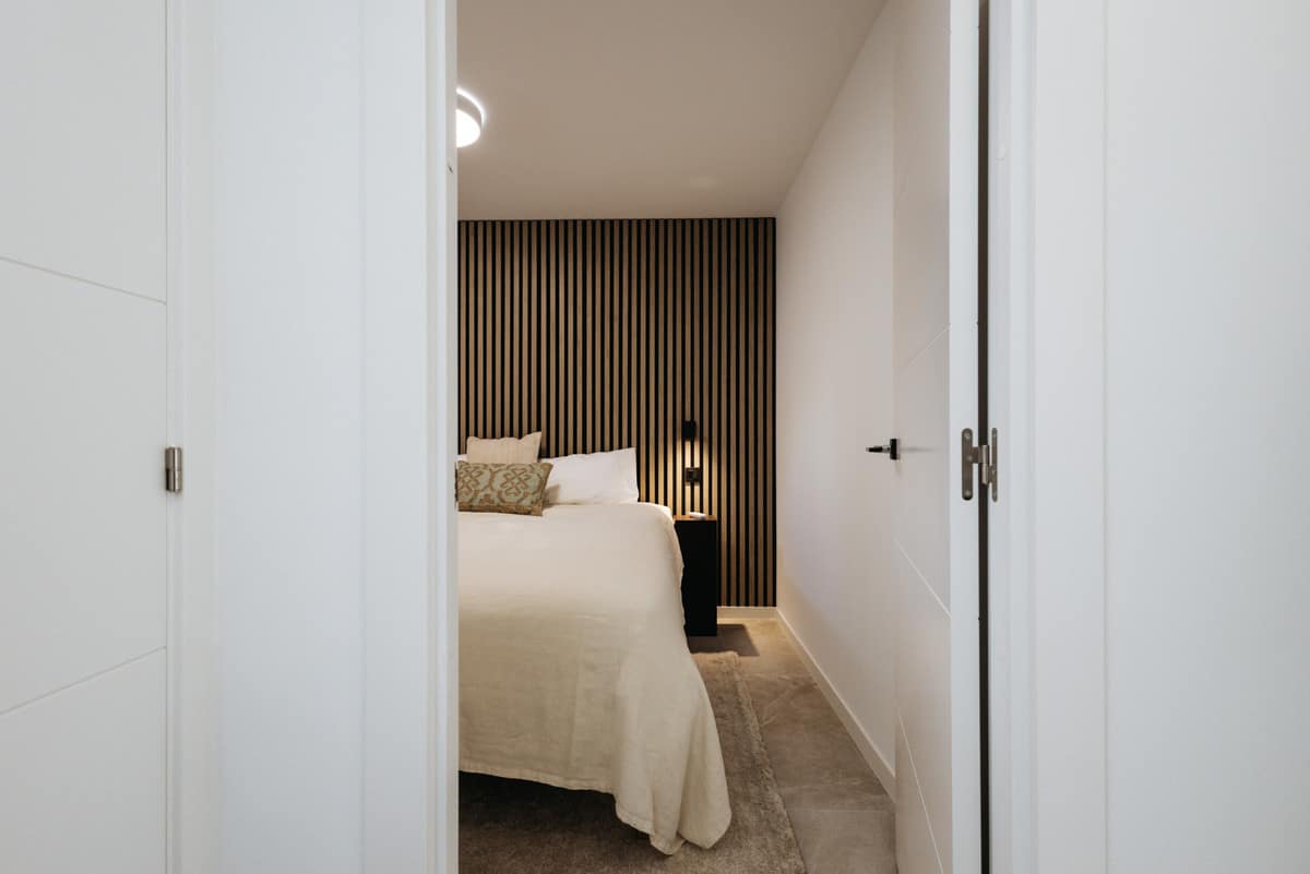 The master bedroom opens directly onto a private outdoor chill-out area with sun loungers, lush greenery, and a tranquil ambiance—your own secluded retreat to fully embrace the Costa del Sol lifestyle.