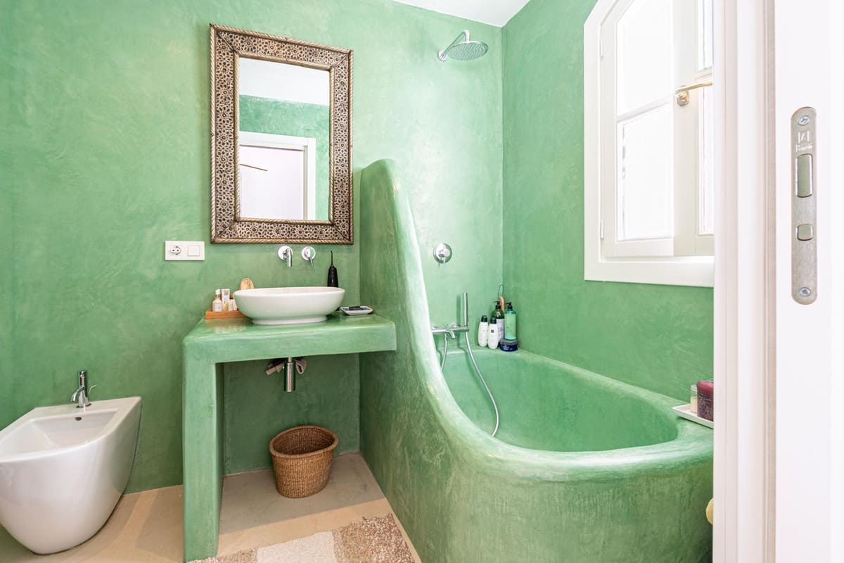 Upstairs, natural light guides you to two generously sized and bright bedrooms, each offering beautiful views that invite slow, peaceful mornings. Both bedrooms feature en-suite bathrooms finished in exquisite Moroccan tatale, a design choice that lends a unique and soulful character to the space. One of the bedrooms also includes a small walk-in closet — perfect for keeping things effortlessly organized.