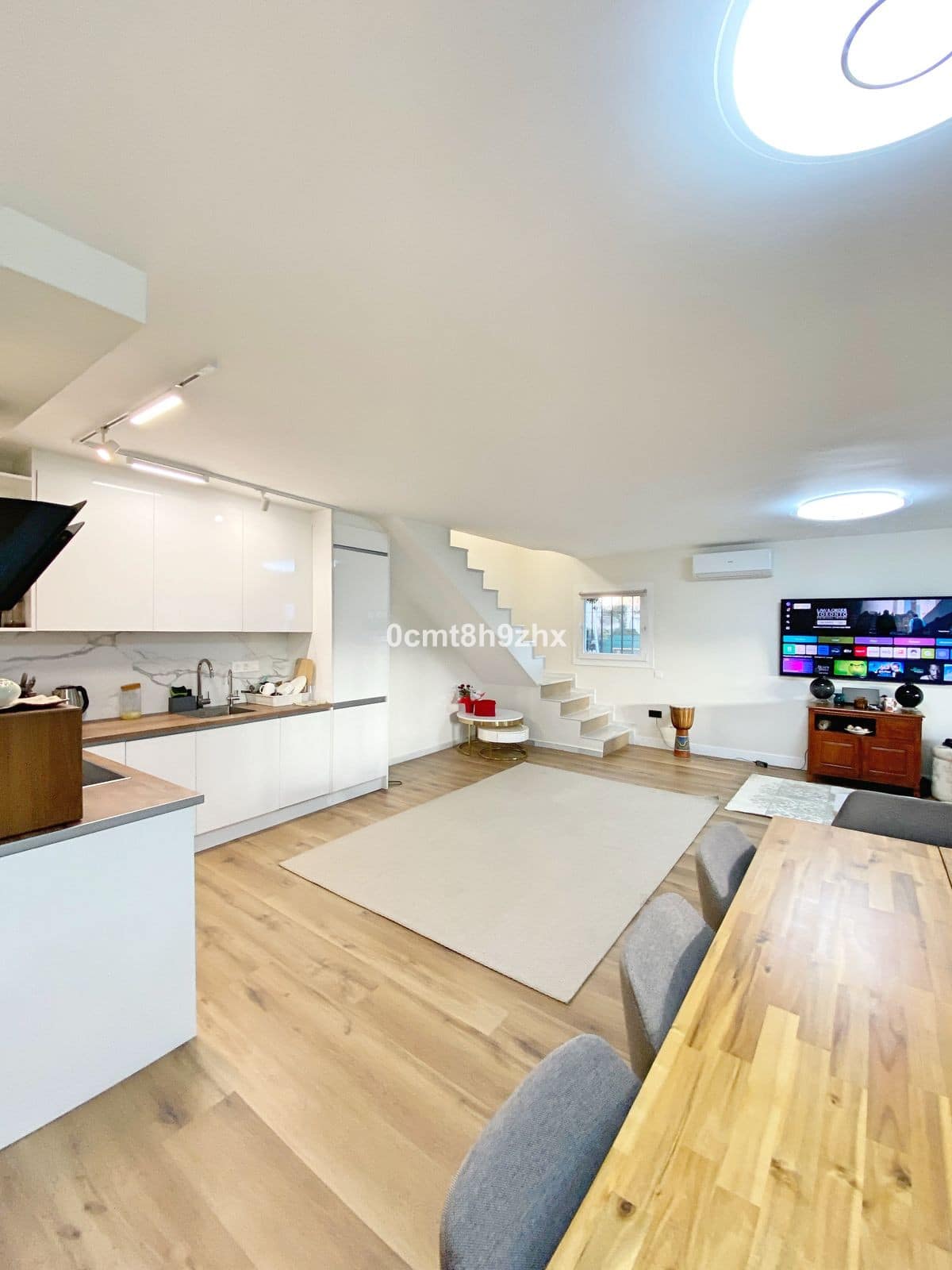 From the second bedroom, a staircase leads to a spacious rooftop solarium, offering plenty of possibilities for relaxation, entertaining, or creating your own outdoor oasis.