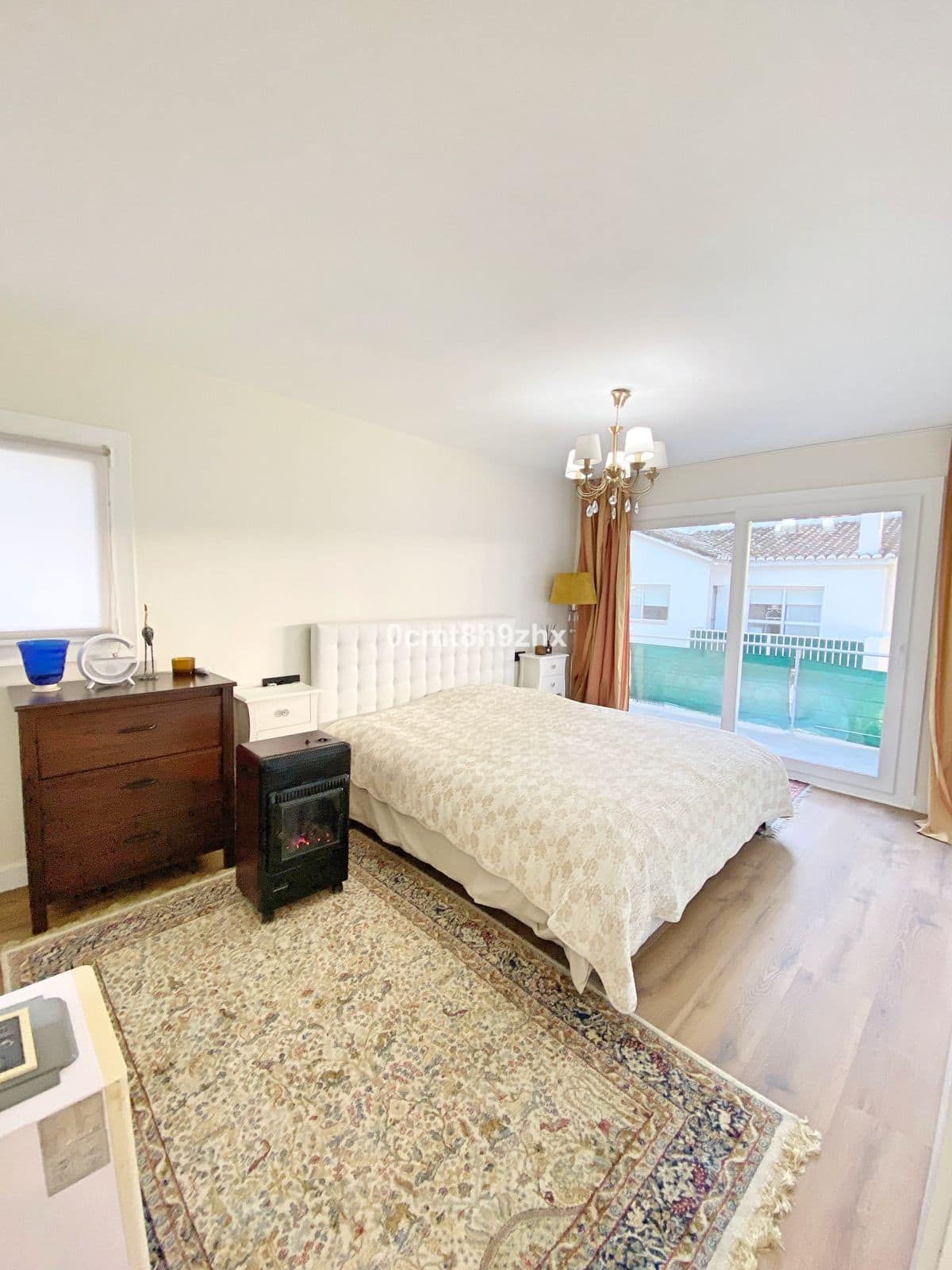Upstairs, the master bedroom features ample wardrobes and a sunny south-facing terrace overlooking the garden, perfect for enjoying the Mediterranean climate. The second bedroom is located on the opposite side, and both rooms share a modern bathroom with shower.