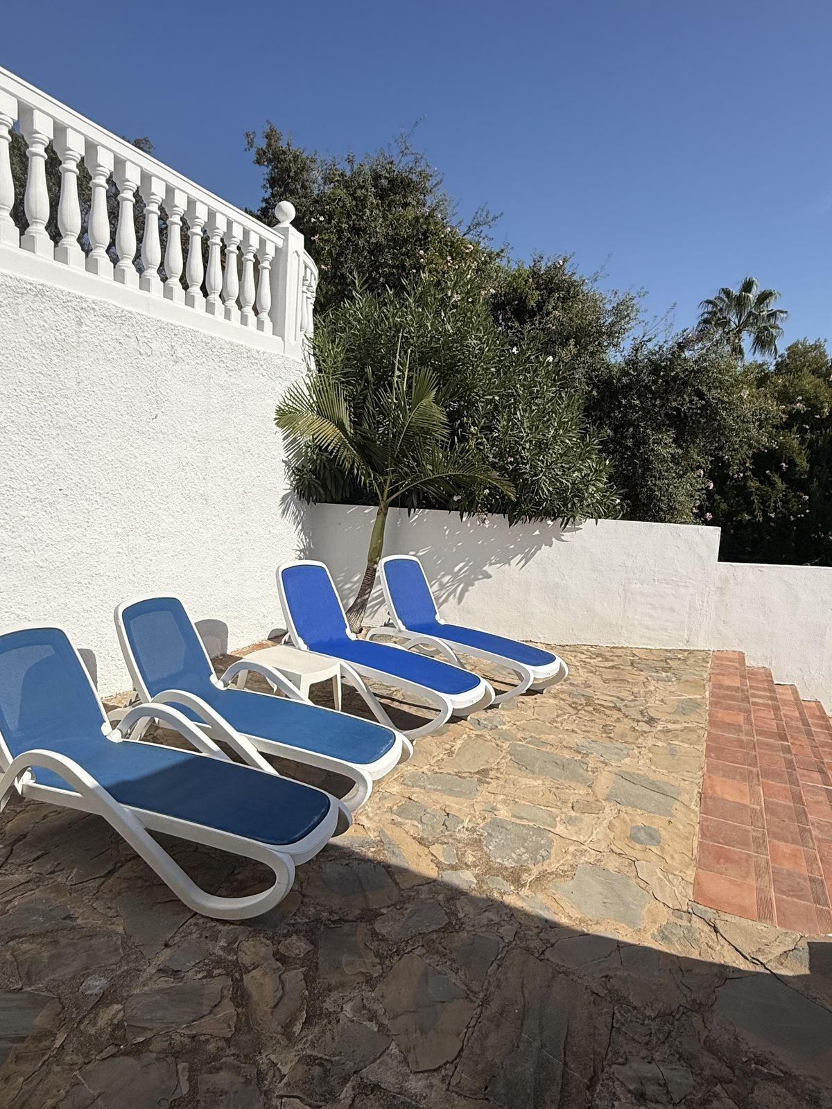 To the outside you will find lovely maintained gardens with mature lemon trees, around the rear of the property is the very private pool and solarium area where you can relax and unwind in total privacy.