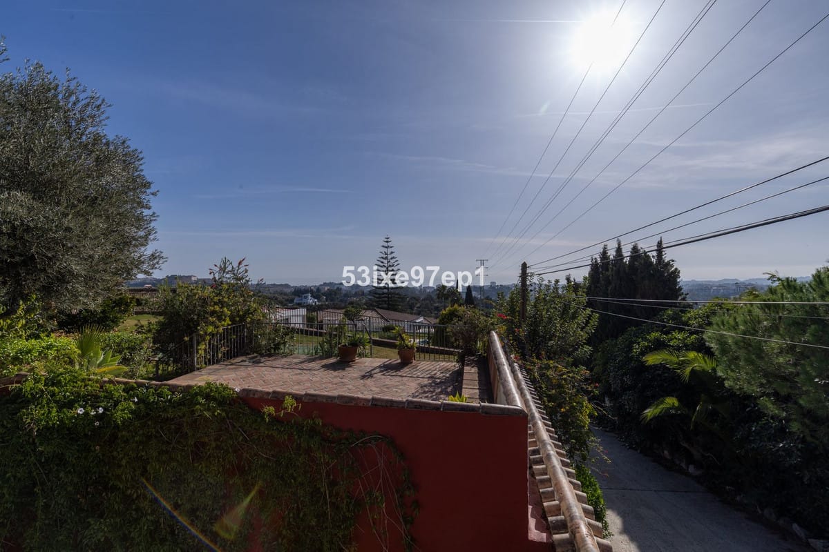 At the back of the house there is a patio with morning sun. Above the garage we find a patio with open views down to the sea and all of Fuengirola. Around the pool there are several places where you can place a dining table, sun loungers and seating areas.