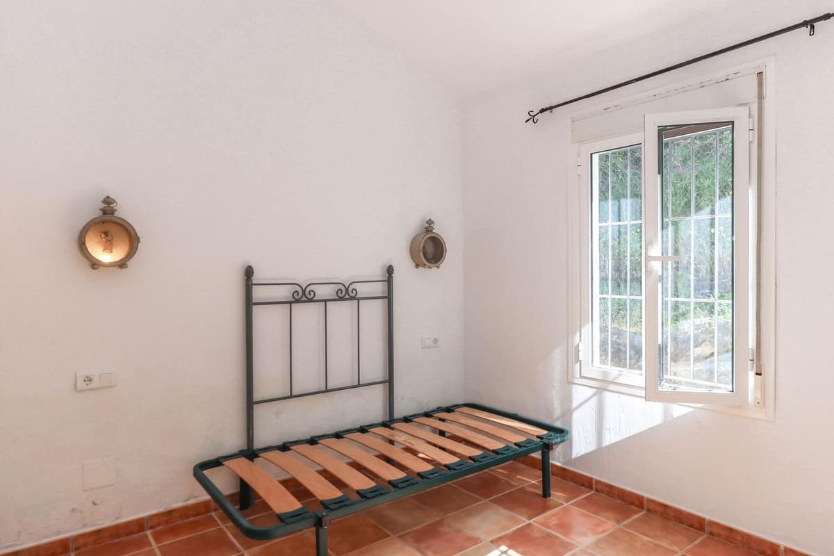As you enter the property through the electric gates you have a stoned road that leads to the finca, with ample car parking, 2 car carport / garage, at the front of the property there is a nice covered terrace to enjoy alfresco dining. Entering the finca into the open living room / kitchen, you have high ceilings with wood beams, the kitchen is fully fitted and in prestine condition, and the living room has a wood burner and pellet stove. From here is also access to the back part of the house where there is a nice courtyard and you can combine being outside and in as well. From the living room you have a hallway that leads you to the 2nd double bedroom, guest full bathroom and large master suite with a big ensuite bathroom, this is a huge room with lots of potential for making it even into 2 bedrooms, you have skylights, a window and door that accesses the same back courtyard, nice fitted wardrobes. The master bathroom has a large soaker tub and free standing separate shower.