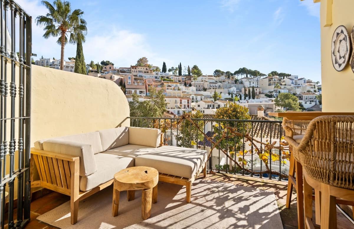 Inside, the townhouse offers a bright and comfortable open-plan living area, where natural light flows throughout the space. The living room connects seamlessly to the dining area and kitchen, creating an easy and welcoming layout. One of the highlights of this home is the 13 m² terrace, offering lovely views over La Heredia’s charming streets and even the sea. It’s the ideal spot for a morning coffee, a slow lunch, or a glass of wine while soaking up the peaceful atmosphere of the village.