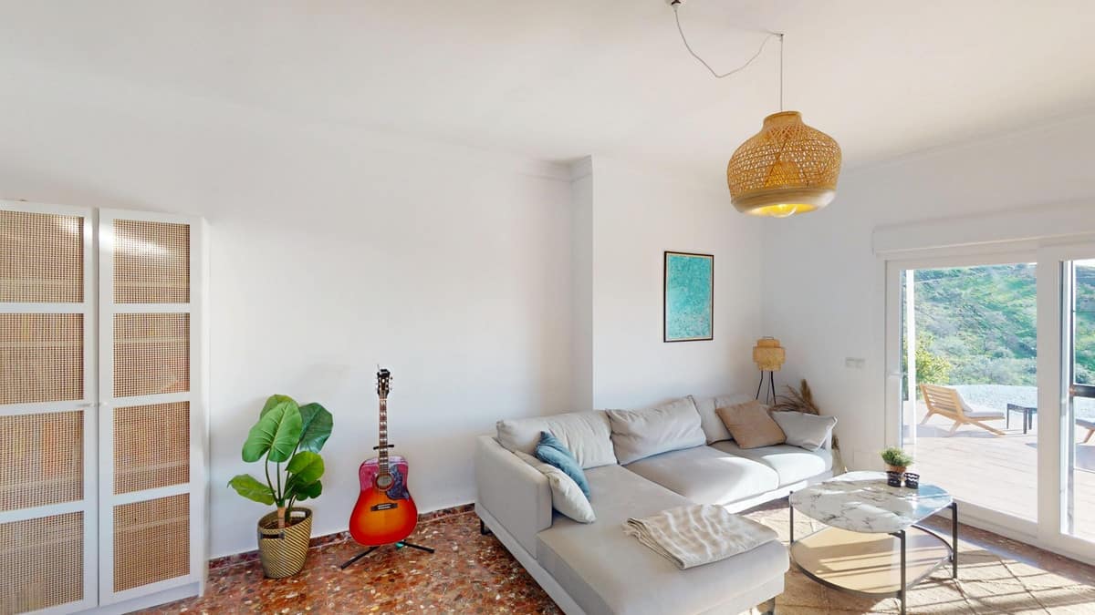 Step into a world where Mediterranean elegance meets modern comfort in this charming 76.2 m2 property located in the heart of Moclinejo, Malaga. This sun-drenched home is your gateway to the coveted Spanish lifestyle, with two bedrooms and thoughtfully designed living space that maximises both form and function. The heart of this home is undoubtedly the stunning kitchen, where culinary dreams come true. Light wood furniture brings warmth, while state-of-the-art appliances, including a sleek gas hob and built-in oven, satisfy your inner chef. The checkered floor adds a touch of classic charm, combining tradition with contemporary style. The living-dining room is an example of the modern Spanish lifestyle, with natural light streaming in through large windows, illuminating the space and offering stunning views of the surrounding landscape. An elegant rattan pendant lamp creates a cozy atmosphere for relaxing or entertaining. The room opens onto a lovely terrace, ideal for alfresco dining or simply enjoying the Mediterranean sunshine. The master bedroom is a serene retreat, with 17.7 m2 of absolute comfort. Mirrored cabinets maximize space and reflect light, making the room feel even more spacious. Another rattan lamp adds a bohemian touch, complementing the airy atmosphere of the room. The second bedroom, currently used as a children's room, demonstrates the versatility of the property. With its neutral palette and charming details, it's ready to adapt to your needs, whether as a children's bedroom, home office, or guest suite. The bathroom is a spa-like oasis, with stylish tiles and modern fixtures. A large window allows natural light to flood the space, creating a bright and refreshing atmosphere. Throughout the property, terracotta floors bring an authentic Spanish character, while modern amenities such as air conditioning ensure year-round comfort. The thoughtful layout and elegant design create a harmonious flow, making every day feel like a Mediterranean holiday. Located in the picturesque village of Moclinejo, this property offers the perfect balance between tranquillity and access to Malaga's vibrant culture. Here, you don't just buy a house; Invest in a lifestyle that embodies the essence of Spanish charm and modern convenience. Make this place your own Mediterranean paradise and start living the life you've always dreamed of. We are pleased to be able to present this dream property to you very soon, either in person or via a virtual viewing. Because this world is unique, just like our Axarquía. In Andalusia. On the Costa del Sol. Here, on the sunny side of life…     We are delighted to be able to present this property to you soon, either personally or via virtual viewing. Because this world is unique – like our Axarquía. In Andalusia. On the Costa del Sol. Here, on the sunny side of life…