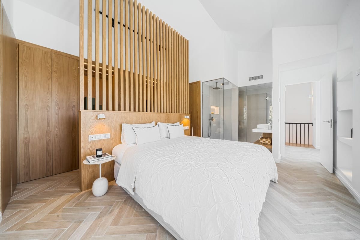Beautifully refurbished Scandinavian style duplex penthouse in the sought – after area of the New Golden Mile, walking distance to the beach and supermarkets Mercadona and Lidl and many other amenities. This beautiful home has been fully renovated and offers 3 bedrooms and 3 bathrooms (2 ensuite), a bright and spacious living and dining area, and large southwest facing terraces with panoramic sea and La Concha mountain views. You will love the privacy on the solarium with private jacuzzi, where you can take in amazing views of the Mediterranean Sea all the way to Gibraltar and Africa. There is also an east – facing terrace where you can enjoy breakfast in the early morning sun. This stunning home offers more than 90m2 of open terraces!