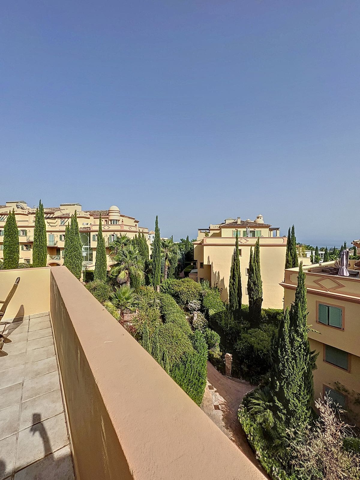 Superb and spacious 127m² ground-floor apartment, ideally located at the highest point of the development. It features two terraces totaling 78m², partially covered (perfect for year-round enjoyment), with direct access to the 140m² communal garden and offering beautiful views of the sea and Gibraltar. Being a corner unit, it enjoys optimal natural light thanks to its three façades and its south/southwest orientation.