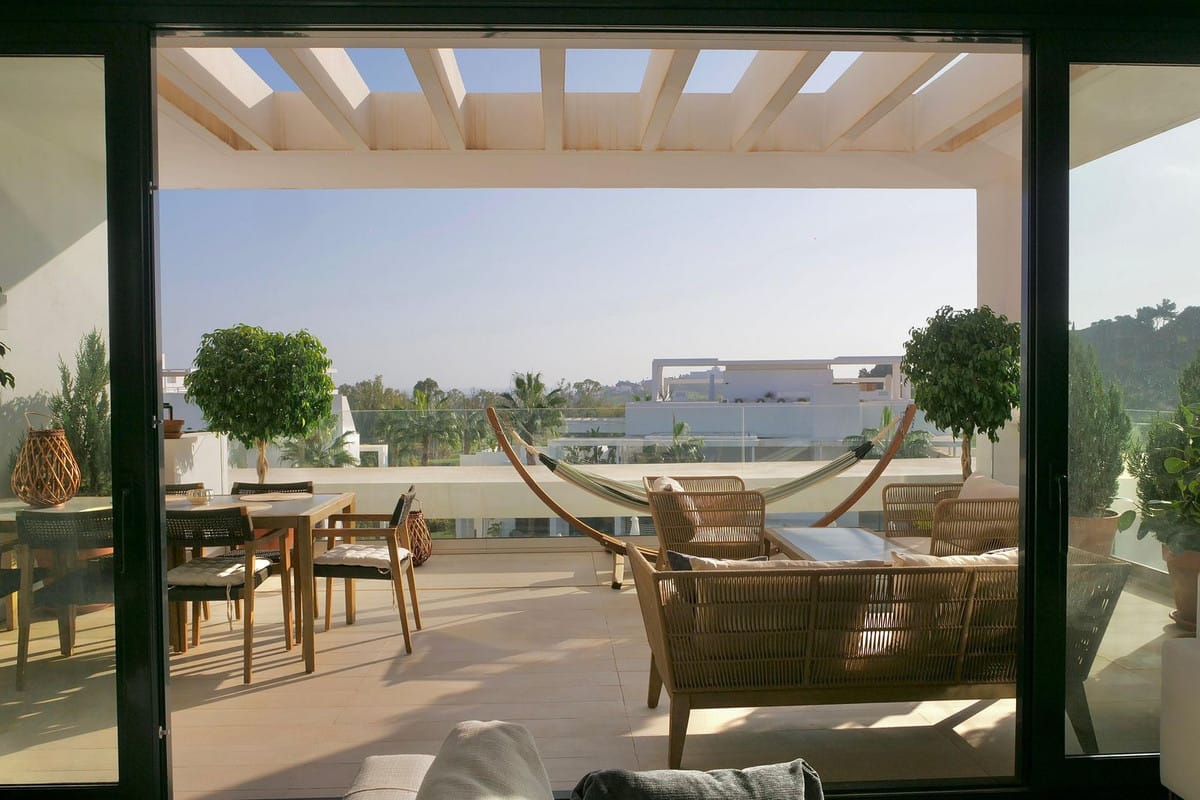 This apartment represents a refined living experience in Terrazas de La Quinta, a peaceful residential enclave in Benahavís. This fully renovated three-bedroom, three-and-a-half-bathroom apartment is set within a secure gated community and offers a harmonious blend of contemporary design, functional layout, and an elevated position with panoramic views over the La Quinta Golf Course. With a total built area of 101 square meters, including 83 square meters of interior space and an 18-square-meter southwest-facing terrace, this home has been carefully planned to provide both comfort and style in equal measure.