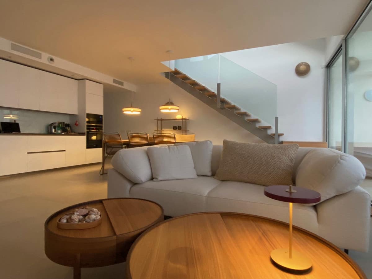 Upon entering the property, you are welcomed by an elegant entrance hall that opens into a spacious and bright open-plan living and dining area. The sophisticated Italian-designed kitchen is fully fitted and equipped with high-end appliances, including a reverse osmosis water filtration system. Large sliding windows from the living area lead directly to a generous terrace where you can enjoy stunning sea views and outdoor living.