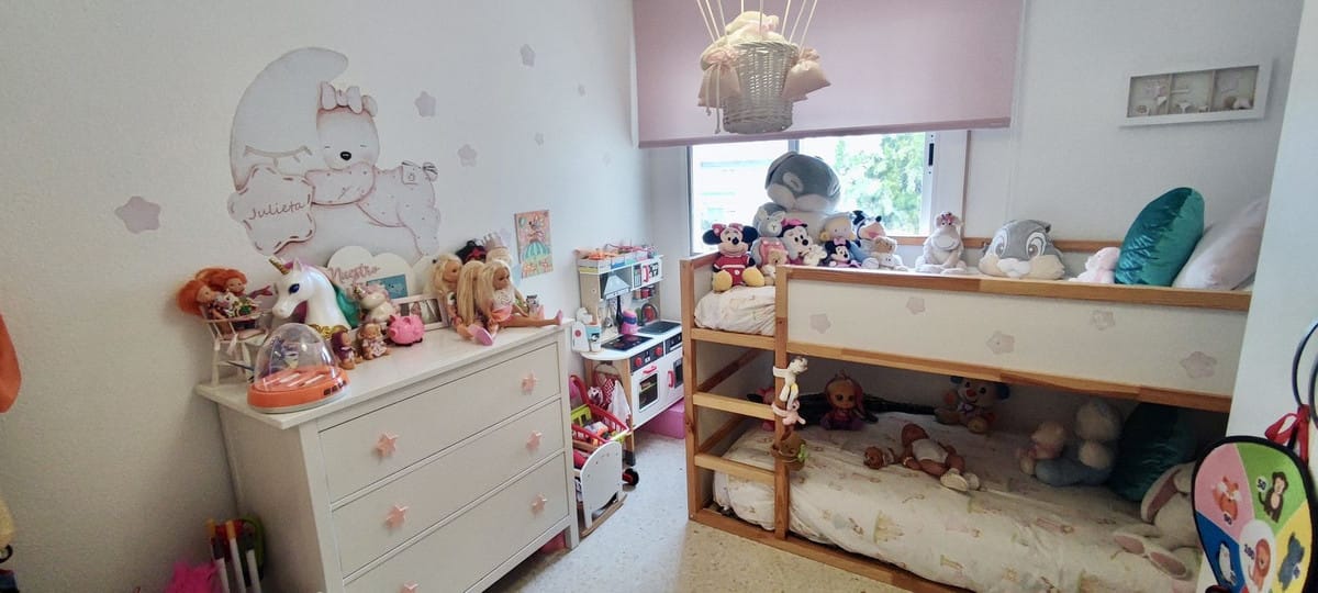 The property is located on the second floor of a building with a lift and has a floor area of 107 m², distributed over a master bedroom, two secondary bedrooms, a full bathroom (with the possibility of adding a second bathroom), a fully fitted and equipped separate kitchen with utility room, and a spacious living-dining room of approximately 25 m² with direct access to a pleasant 8 m² terrace, facing east and with unobstructed views of the communal areas.