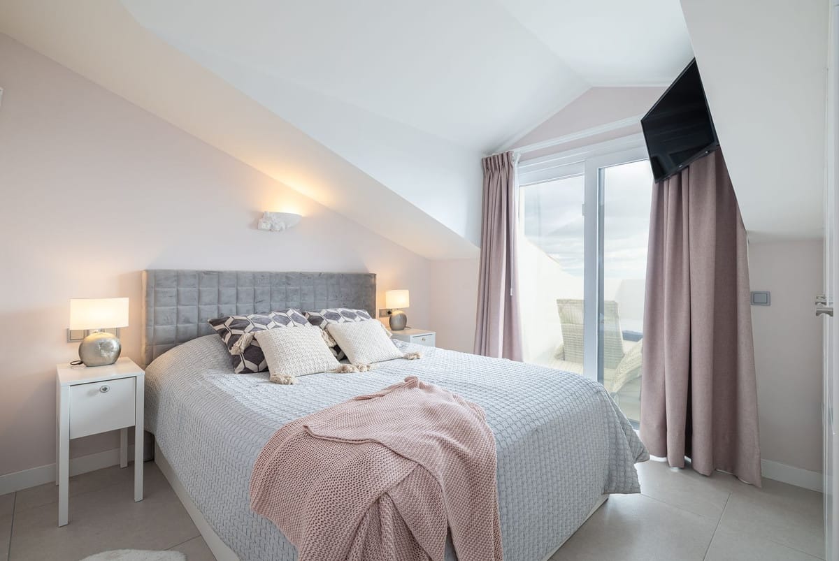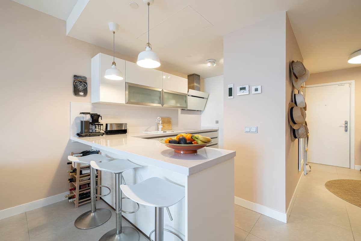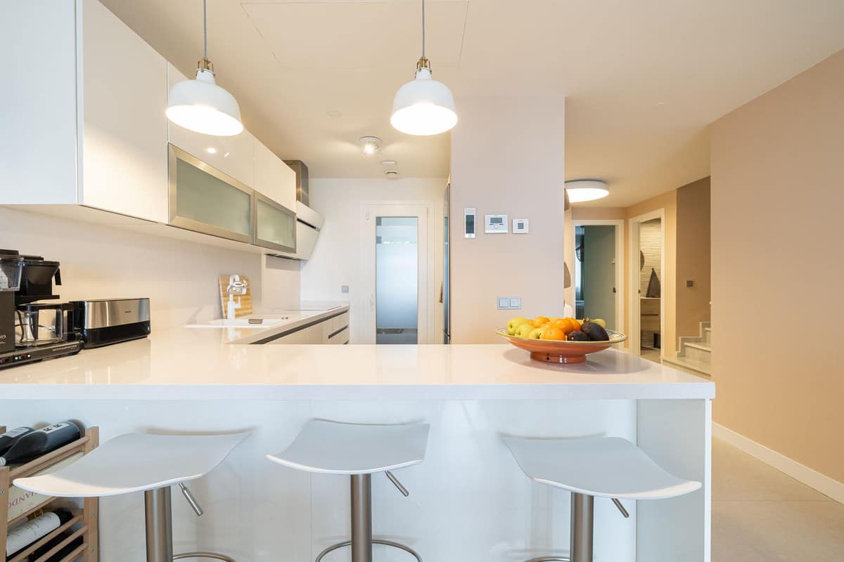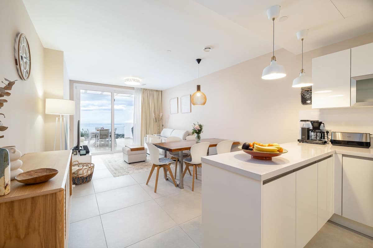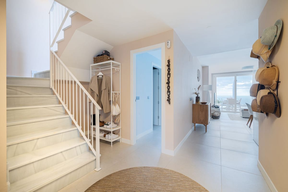 The apartment is distributed over two levels and comprises three spacious bedrooms and three well-appointed bathrooms. All bedrooms include integrated wardrobes. The lower level features an open-concept living area and a highly functional kitchen, allowing you to prepare meals while overlooking the sea. A practical utility room is located discreetly at the rear of the kitchen. The home’s convenience is further enhanced by a comprehensive water purification system that protects the lifespan of the appliances, complemented by an additional filtration system for pure drinking water.