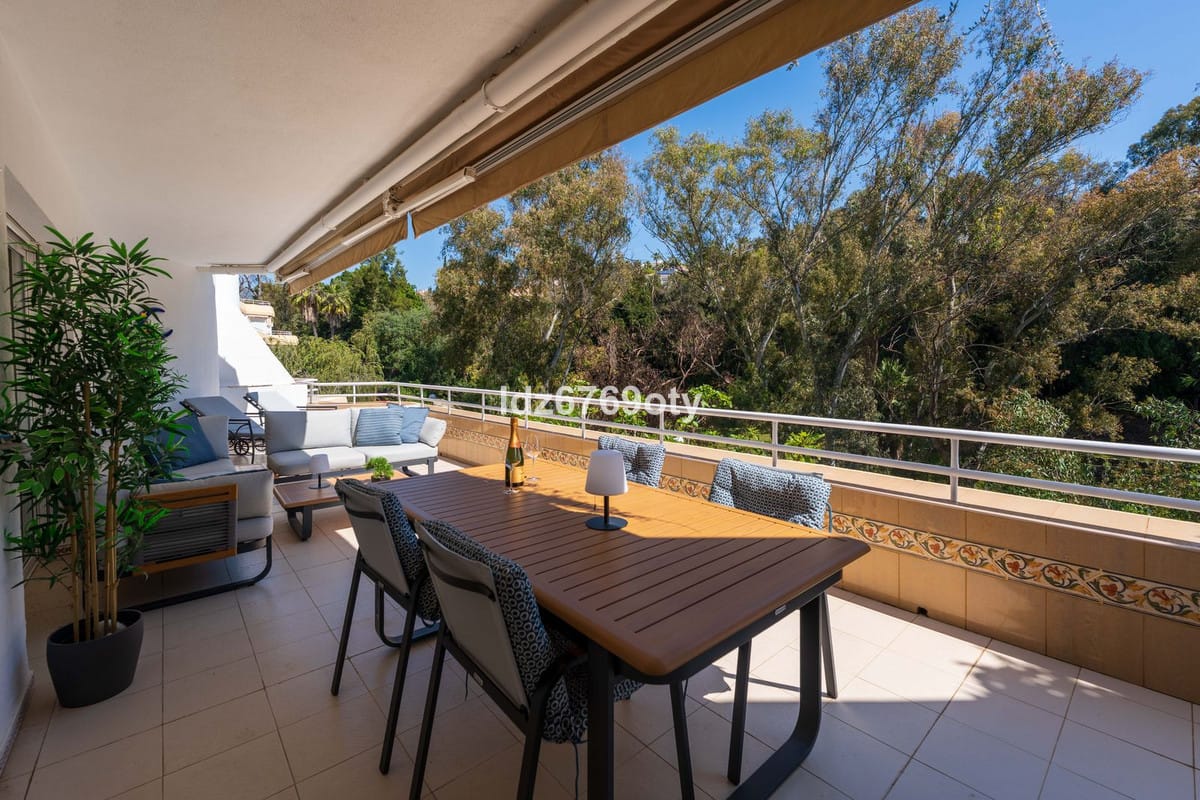 A spacious and very well-maintained luxury apartment in a prime location next to the popular Torrequebrada Golf Course in Benalmádena Costa! This spacious and light-filled corner apartment is situated in the beautifully maintained small-scale ‘Palmeras del Golf’ urbanisation, featuring numerous palm trees and gardens and boasting two swimming pools. The 3-bedroom apartment features a large master bedroom with an en-suite bathroom with double sinks and built-in cupboards, a bath and a toilet. The other two spacious bedrooms share a second bathroom, which also features double sinks and built-in cupboards, a large walk-in shower and a toilet. All bedrooms are fitted with spacious built-in wardrobes and air conditioning units for both cooling and heating.