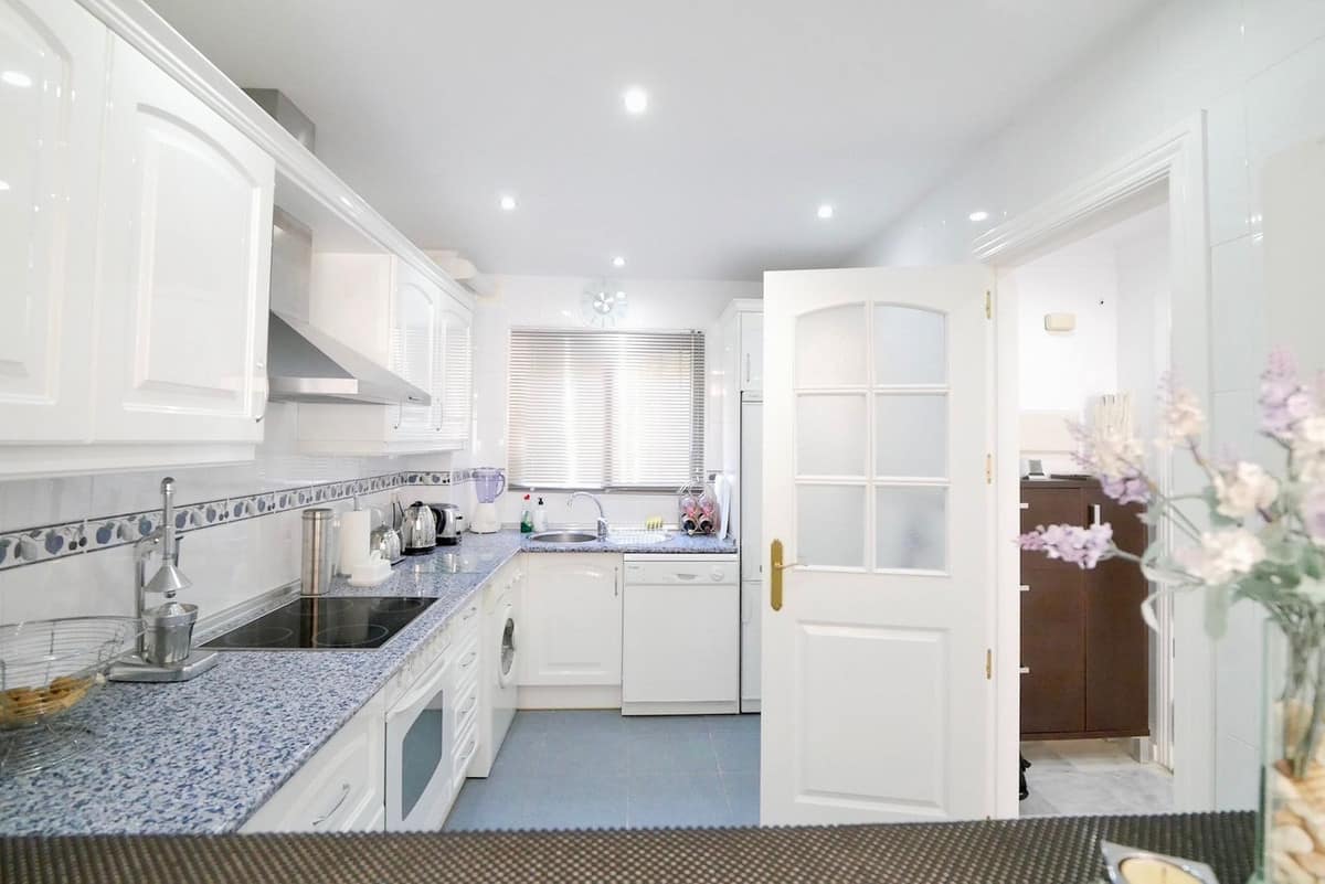 West facing 3 bedrooms/ 2 bathrooms (one ensuite) apartment in upper Calahonda. This elevated ground floor unit has a very spacious living with a log fire, a good size kitchen. The terrace is very spacious with nice see views and view over one of the 2 swimming pools. 7 minutes walk to Miel Y Nata restaurant, Millenium cocktail bar and The family restaurant. Bus stop just across the street that will take you to Fuengirola. Sold furnished.