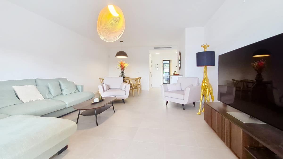 The property comprises an entrance hall, a fully fitted kitchen, a spacious and bright living-dining room with direct access to a large 37 m² terrace, perfect for enjoying breathtaking views over the swimming pool, golf course and mountains. It offers 3 bedrooms, including a master suite, and 2 bathrooms.